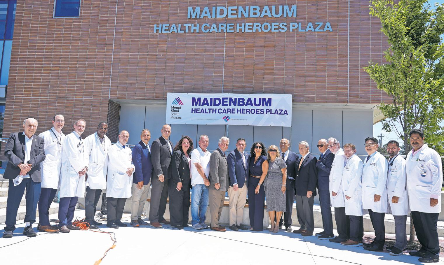 Mount Sinai South Nassau dedicated its new Maidenbaum Health Care Heroes Plaza on Monday to the hospital’s doctors, nurses and health care workers in honor of their extraordinary efforts during the coronavirus pandemic. The plaza was made possible by a significant donation from Iris and Shalom Maidenbaum, property tax reduction experts from Maidenbaum Property Tax Reduction Group LLC, and member Amy Madmon.