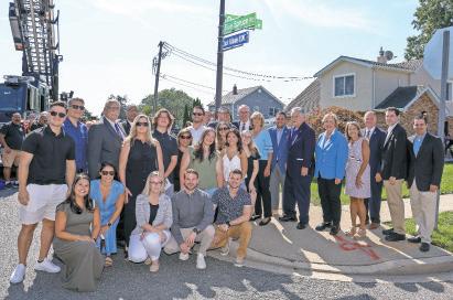 Courtesy Town of Hempstead Hempstead town Supervisor don Clavin, Councilman dennis dunne, town Clerk Kate murray and receiver of taxes Jeanine driscoll held a street dedication at the corner of Blue Spruce road and oak tree Lane in Levittown on aug. 10 in memory of lifelong Levittown resident, united States marine veteran, and former freeport police officer John ‘Jack’ Kilbride.