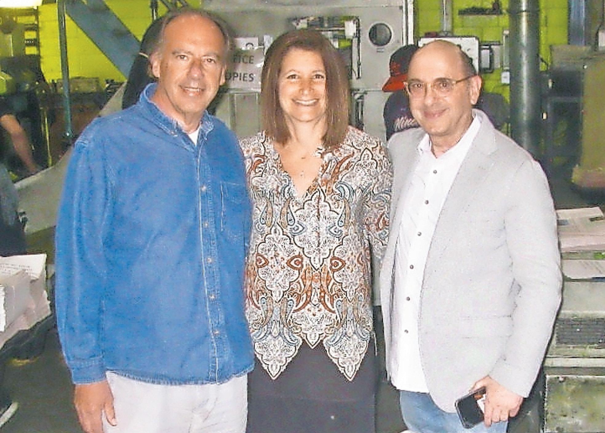 Co-founders Lloyd Trufelman, Karen Sabath and Ed Baum celebrate the successful printing of the Bedford Recorder’s first issue.