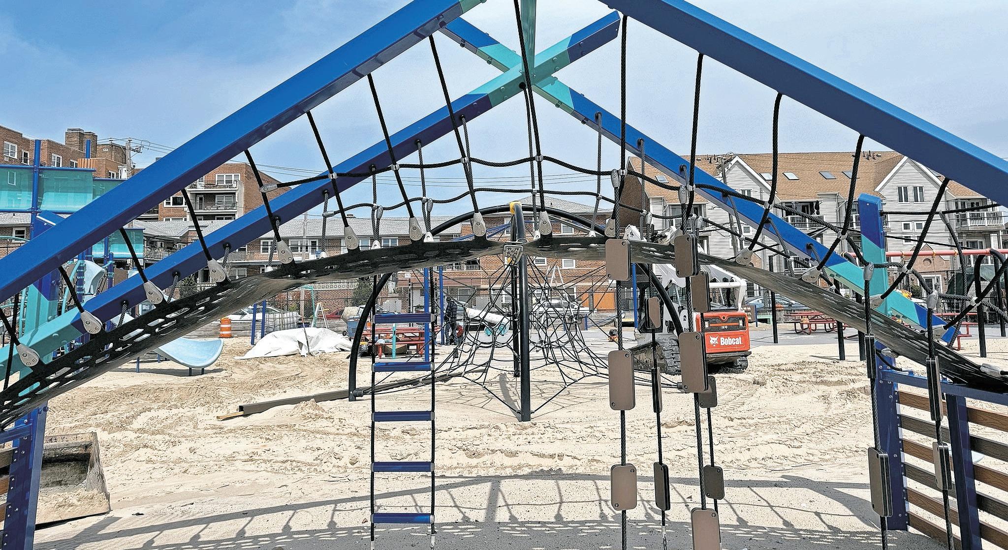 The playground, in the East End, where Pacific Boulevard ends at Shore Road, is undergoing a number of upgrades. In addition to new recreational equipment, recent changes include the expansion of the deck area and the addition of a shade structure. The improvements also address safety concerns stemming from the playground equipment’s deterioration in the beach environment.