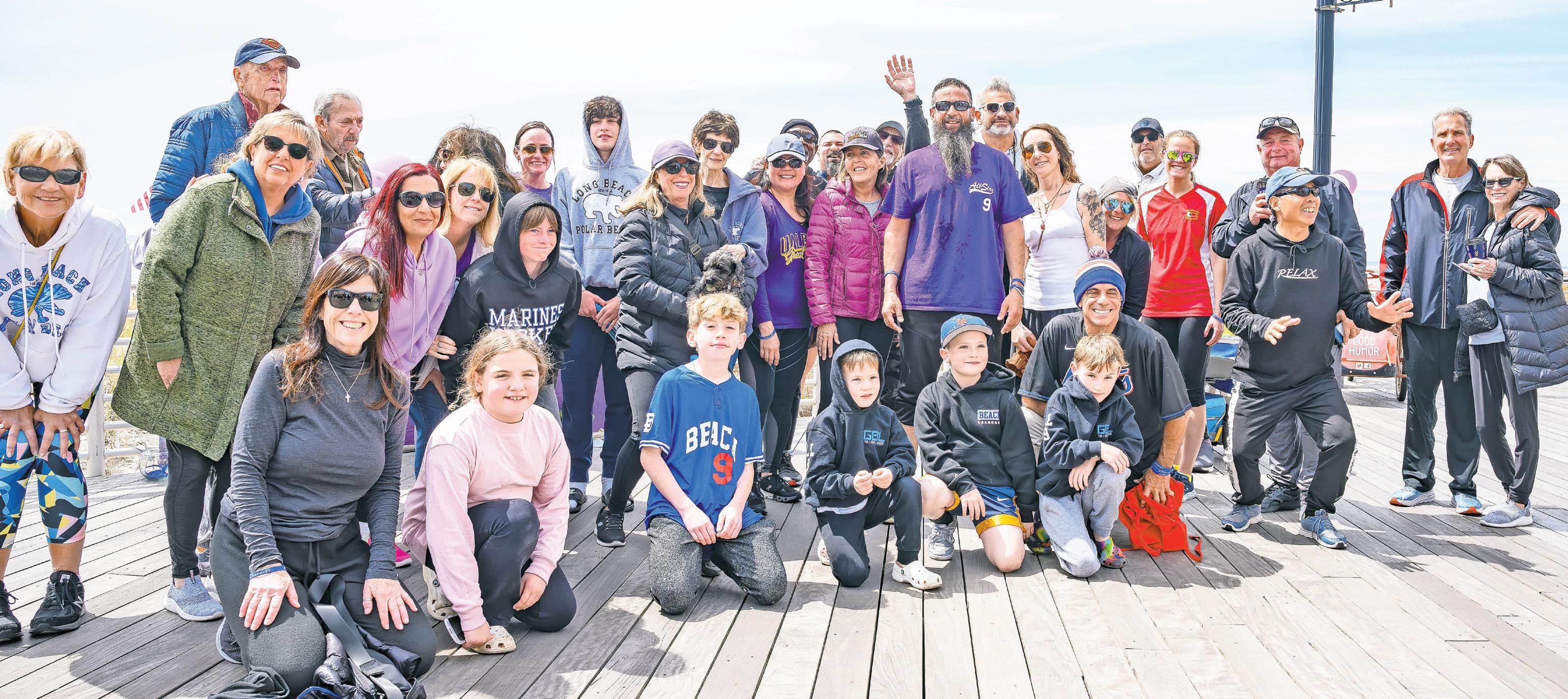Some of the many family and friends who came to honor Lazar on the boardwalk on April 27, remembering him in a unique way — with squats.