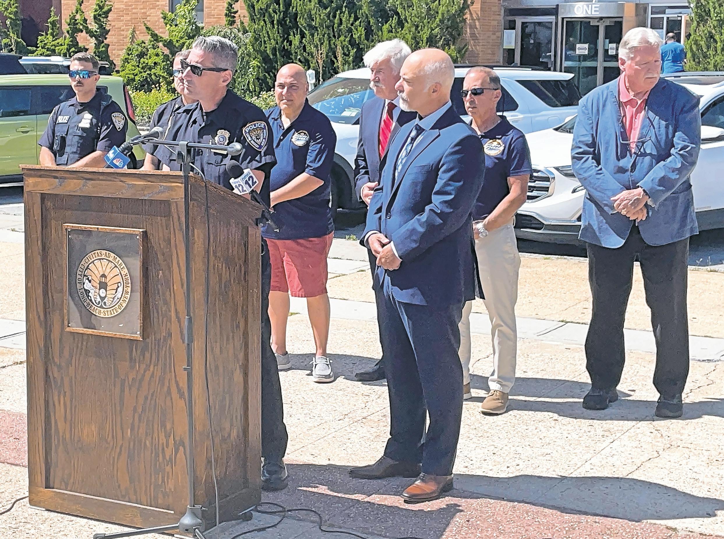 Long Beach city officials gave an update last week on legal action they initiated after the planning of an unauthorized gathering of more than 500 people on the beach three weeks ago that, as it turned out, never took place. Council President Brendan Finn, City Manager Daniel Creighton and Acting Police Commissioner Richard DePalma spoke at a news conference outside City Hall on July 3.
