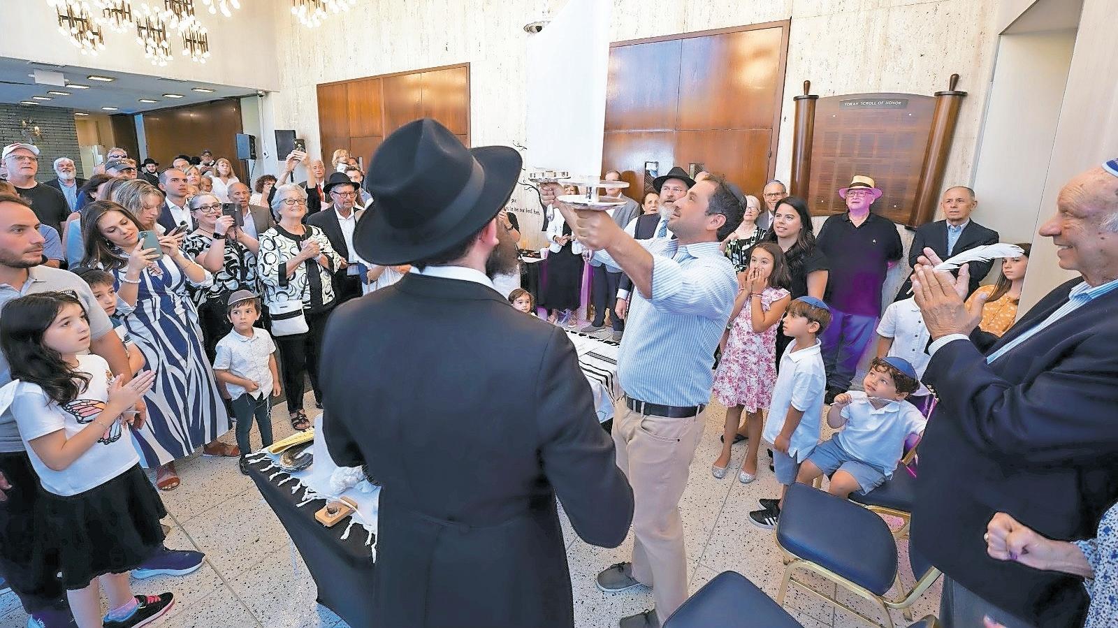 At the ceremony, attendees received a personal letter inscribed in the Torah scroll by a scribe using traditional ink and quill as a gesture for special blessings. Attendees were also served breakfast. Participants then joined an outdoor Torah procession with live music and dancing, ending with the placement of the new Torah in its designated spot in the Holy Ark. The event concluded with a celebratory lunch.