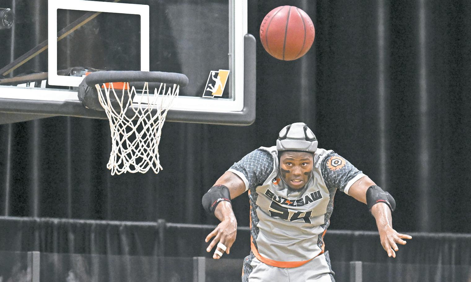 SlamBall is sort of like basketball. Players need to put a basketball into the net by shooting, dunking or laying it in, just like on the court. The difference? Players wear pads and bounce on trampolines. You can also slam into other players, as long as they’re dribbling the ball.