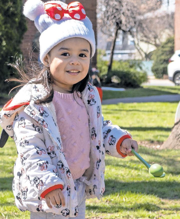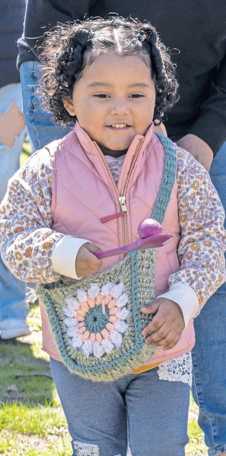 Camila Alvarado, 2, trying to get first place in the Easter egg and spoon race.
