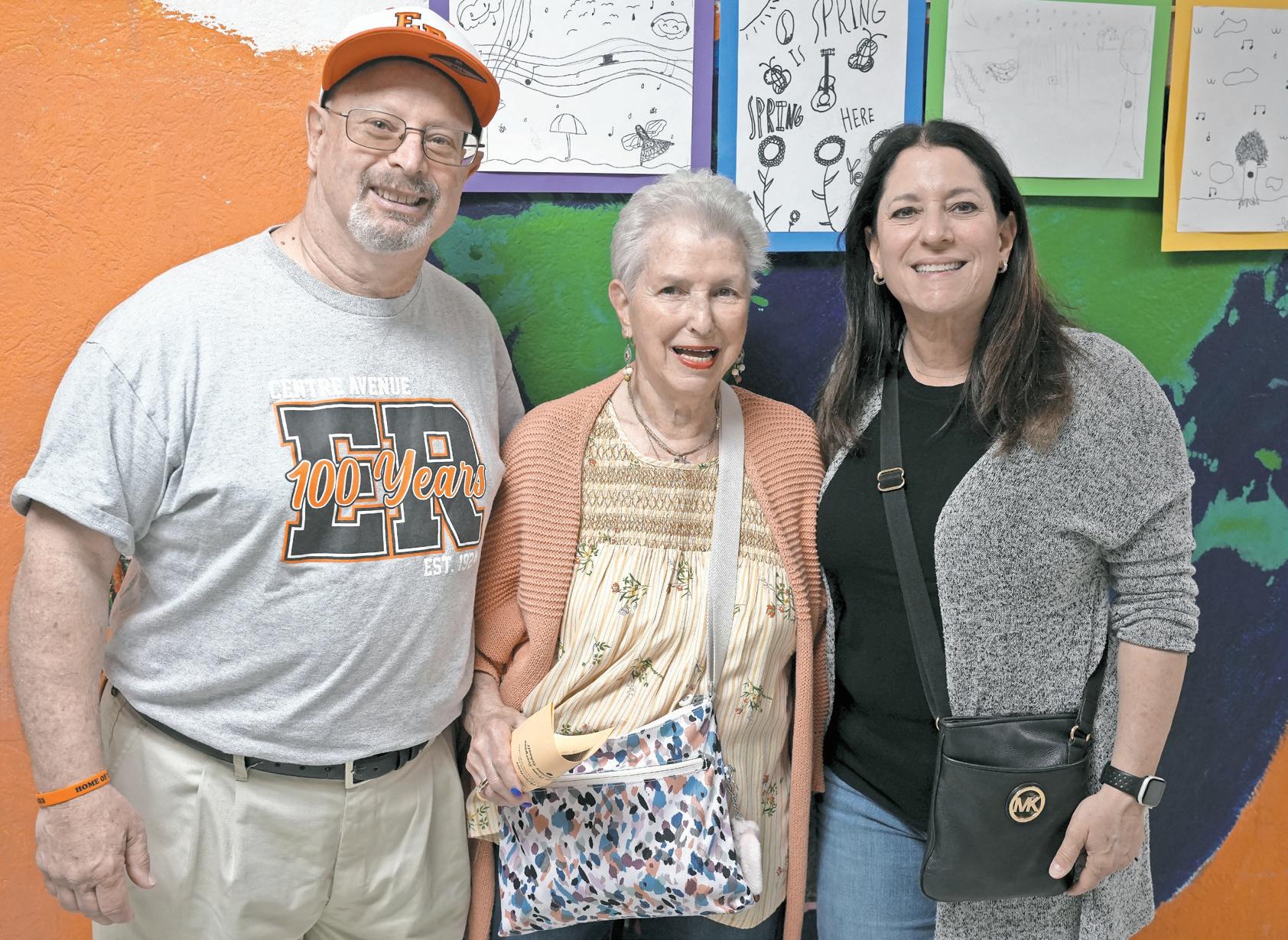 Alumni of Centre Avenue Elementary School celebrated its 100th anniversary last Saturday. Among the attendees were Michael Stern, from the sixth-grade class of 1975; his sister, Lisa Stern Burch, sixth-grade class of 1977, at right; and their mother, Barbara Stern, a past president and secretary of the PTA. More photos, Page 3.