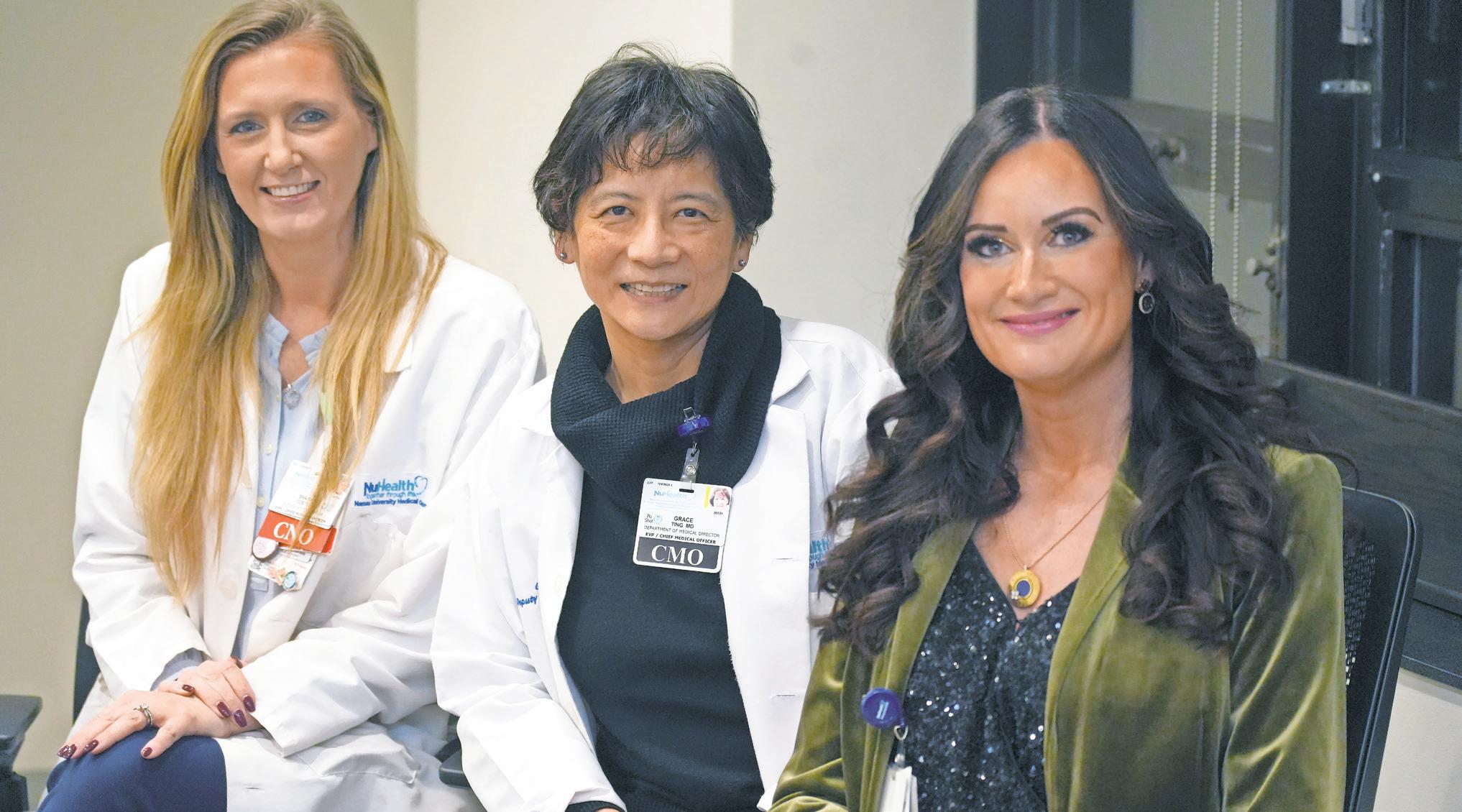Nassau University Medical Center is kicking off the New Year with three women holding top leadership positions. From left, Shannon Costello, the chief nursing officer, Dr. Grace Ting, the chief medical officer, and Megan Ryan, the president and chief executive, were appointed to their positions at a Dec. 5 board meeting.