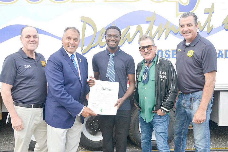Elijah Davis, a graduate of Farmingdale High School was recently recognized by Oyster Bay Town. Davis has committed himself to the service of the nation by joining the United States Navy. He was recognized at the Town’s ‘Salute to America’ celebration, which honors hometown heroes from throughout the Town.