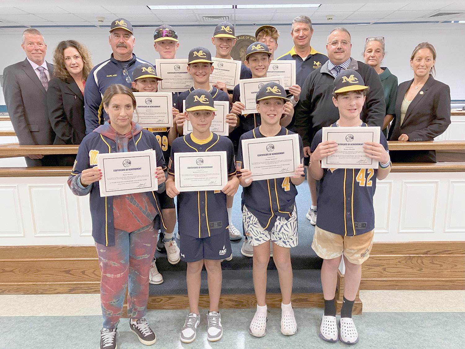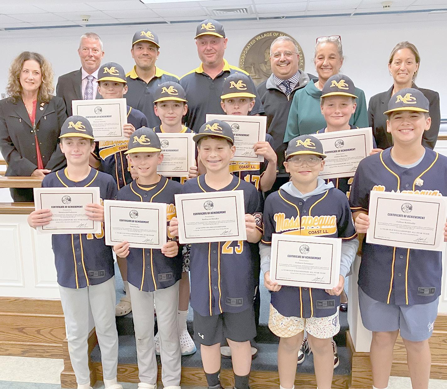 Little League was the highlight of the September 23 meeting of the Massapequa Park Village Board, with the presentation of special citations to each member of the Massapequa Coast Little League 11-year-old and 12-year-old All-Star teams. Both teams won the Long Island Championship in their divisions. Nine athletes from the 11-year-old team and 10 from the 12-year-old team attended.