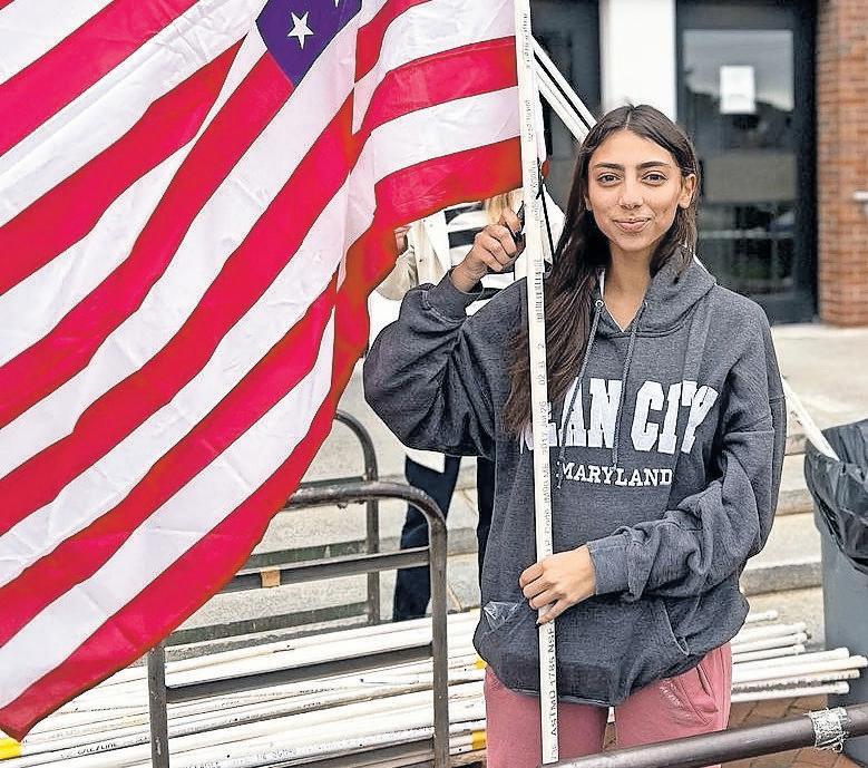 A massive American flag was flown along Sunrise Highway last week for Merrick’s Sept. 11 memorial service.