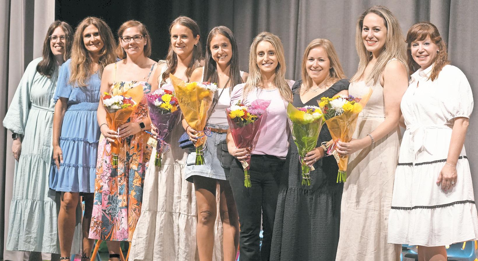 North Bellmore Superintendent Marie Testa, back row, second from right, and Board of Education Trustee Christopher Nardo greeted students at Park Avenue Elementary School’s field day on June 7.