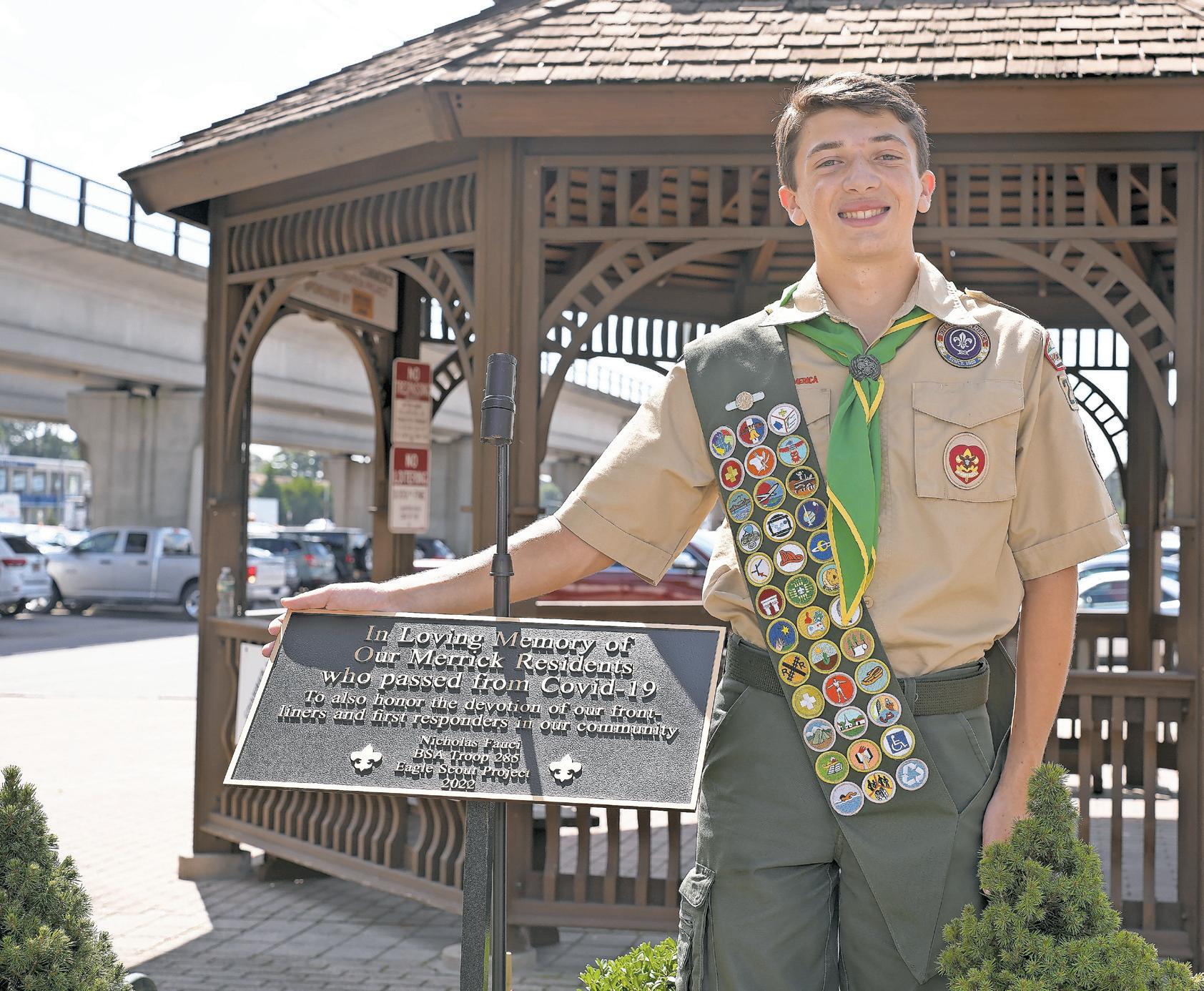 Nicholas Fauci, a Boy Scout in Troop 285 in Bellmore, worked tirelessly over the last few years to complete his Eagle Scout project, in which he installed a memorial for all those who died during the coronavirus pandemic in Merrick.