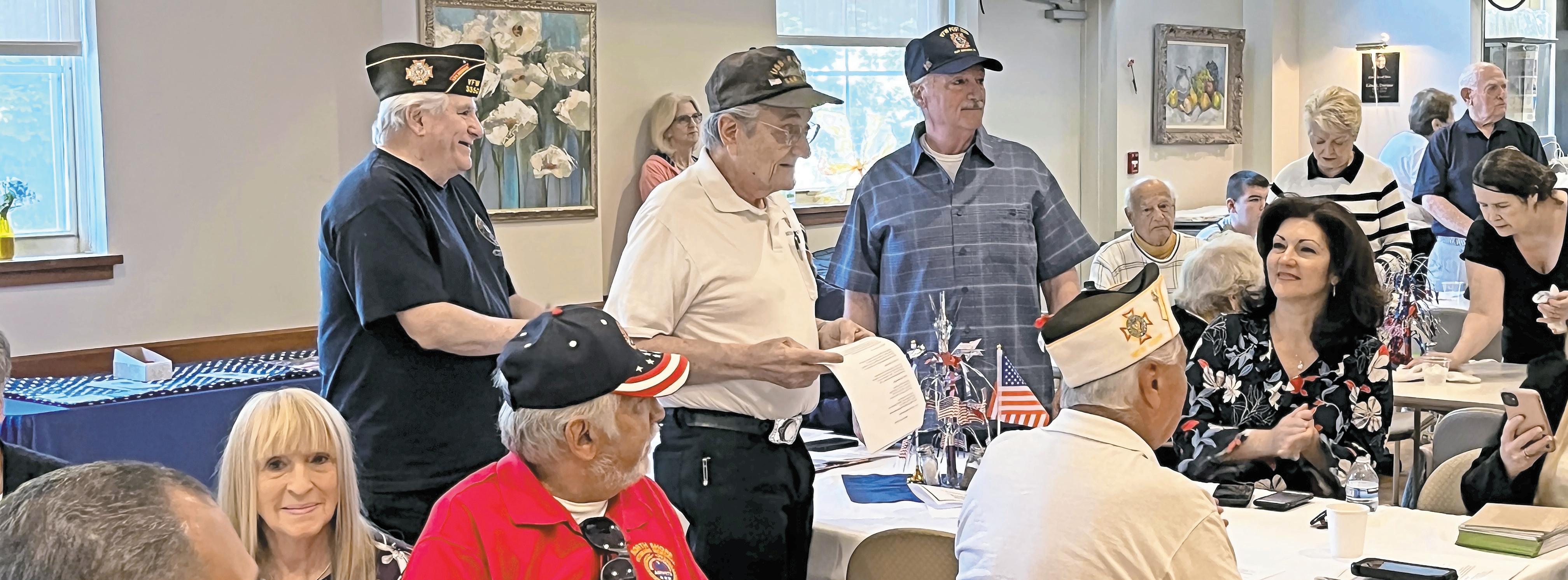 Mary Frignani, the center’s program director, thanked all of the veterans for their service and attendance at the event. She also pointed out several important items on display honoring Memorial Day, from a poster painted by the center’s former watercolor art teacher to a hand-sewn American flag made by the first center members over 40 years ago.