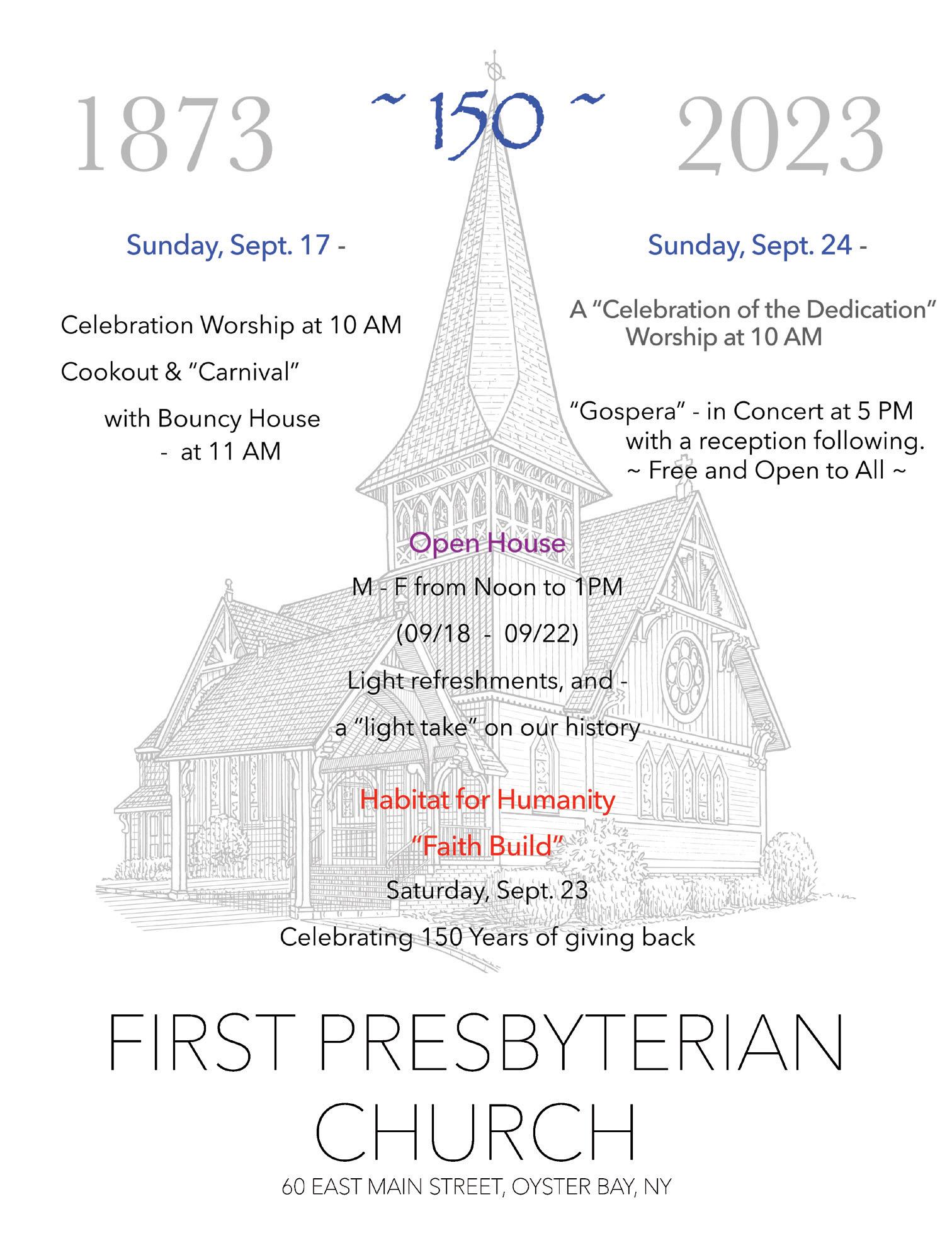 The First Presbyterian Church of Oyster Bay has stood at the center of Oyster Bay, and the spiritual life of many of its residents, since 1873. Now, with the 150th anniversary of the dedication of the building approaching, the church and its congregation are looking forward to celebrating its long and proud history.