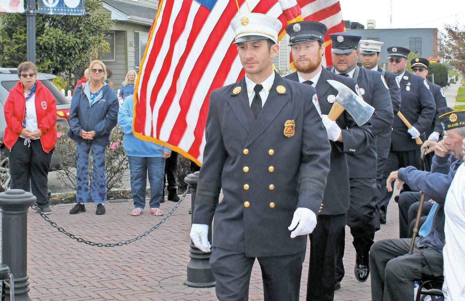 IslaNd PaRk VETERaNs saluted the flag as Bob Wilson spoke.