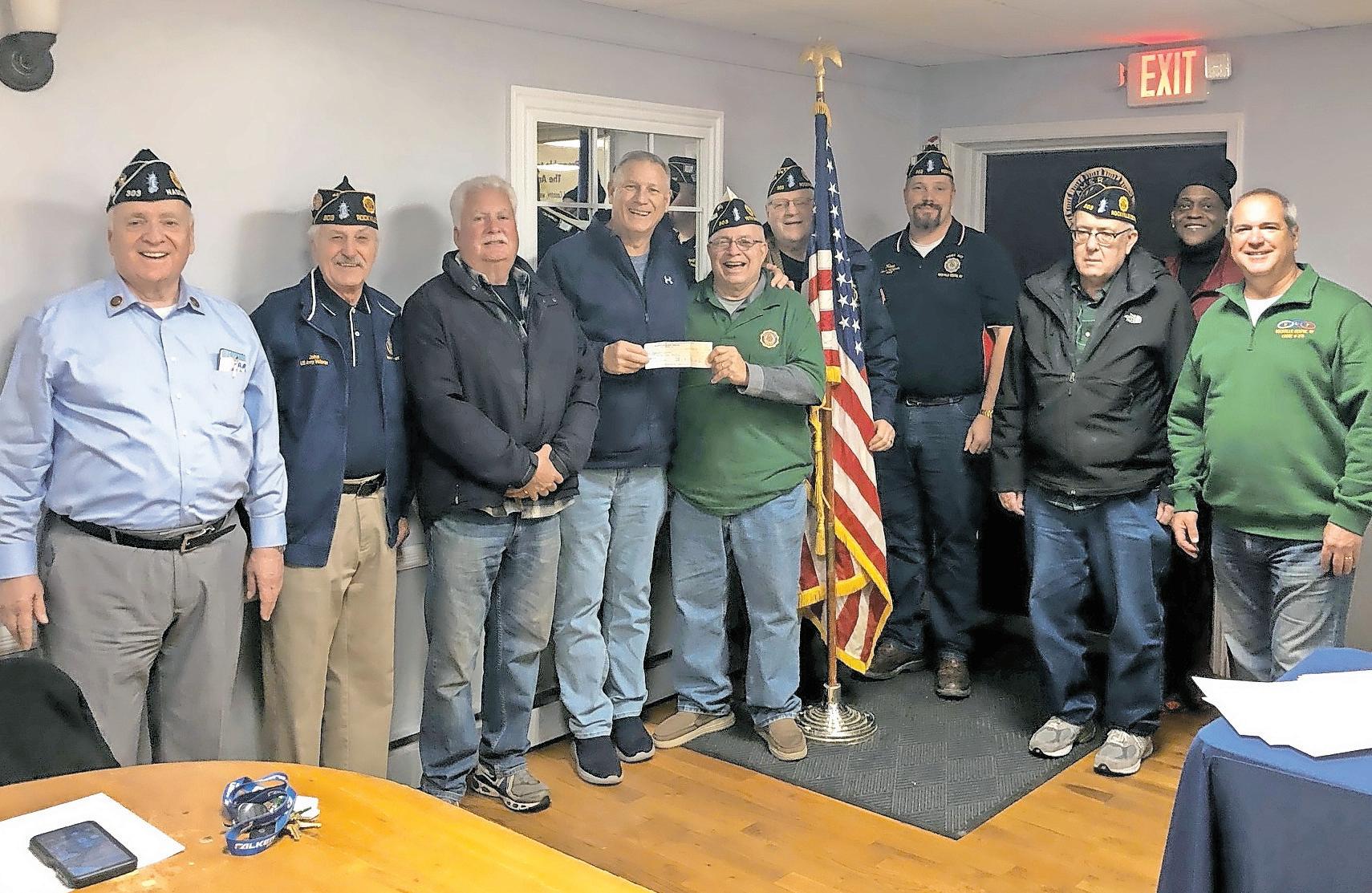 Tom Bogue, fourth from left, a member of the International Order of Odd Fellows Lodge No. 279 in Rockville Centre, presented a check for $1,500 to members of American Legion Post No. 303 on March 15, which will help benefit veterans and their families.