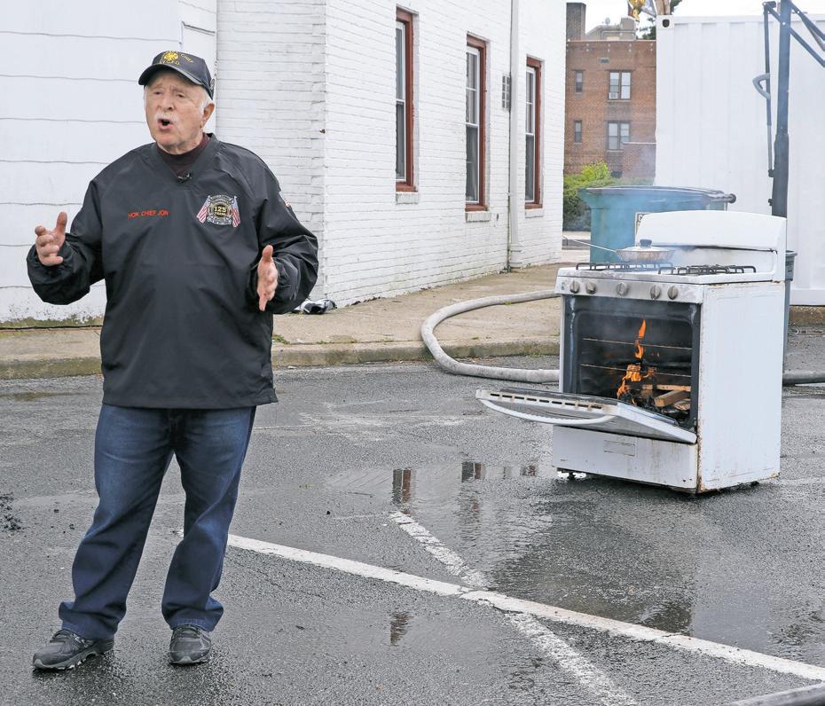 Ex-ChIEF JON MALkIN explains many different aspects of fires and spreading fires at home with open doors. Maureen Lennon/Herald photos