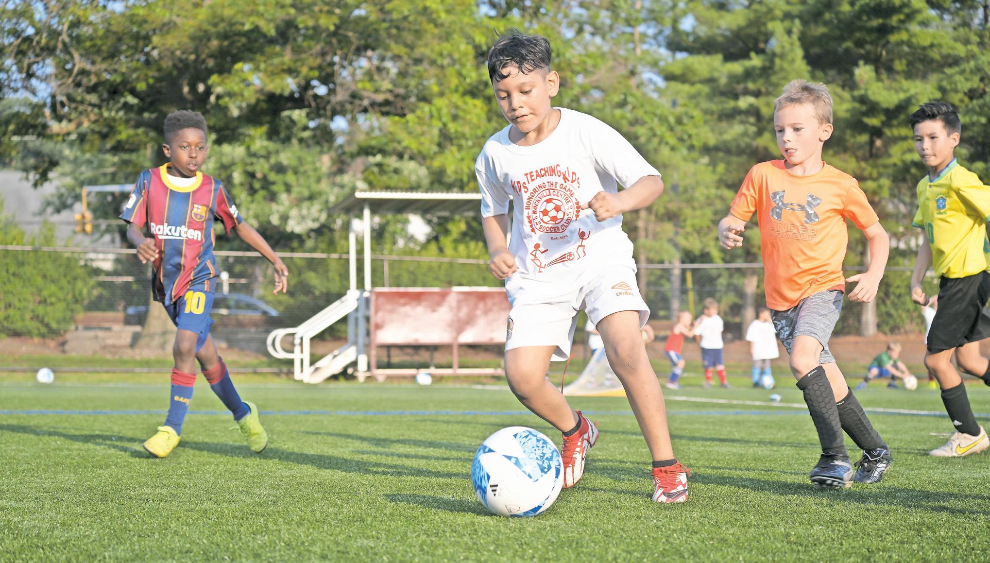 More than 100 young soccer players hit the field at the Rockville Centre Athletics Complex on July 26 to participate in the annual “Kids Teaching Kids” free summer program sponsored by the RVC Soccer Club.