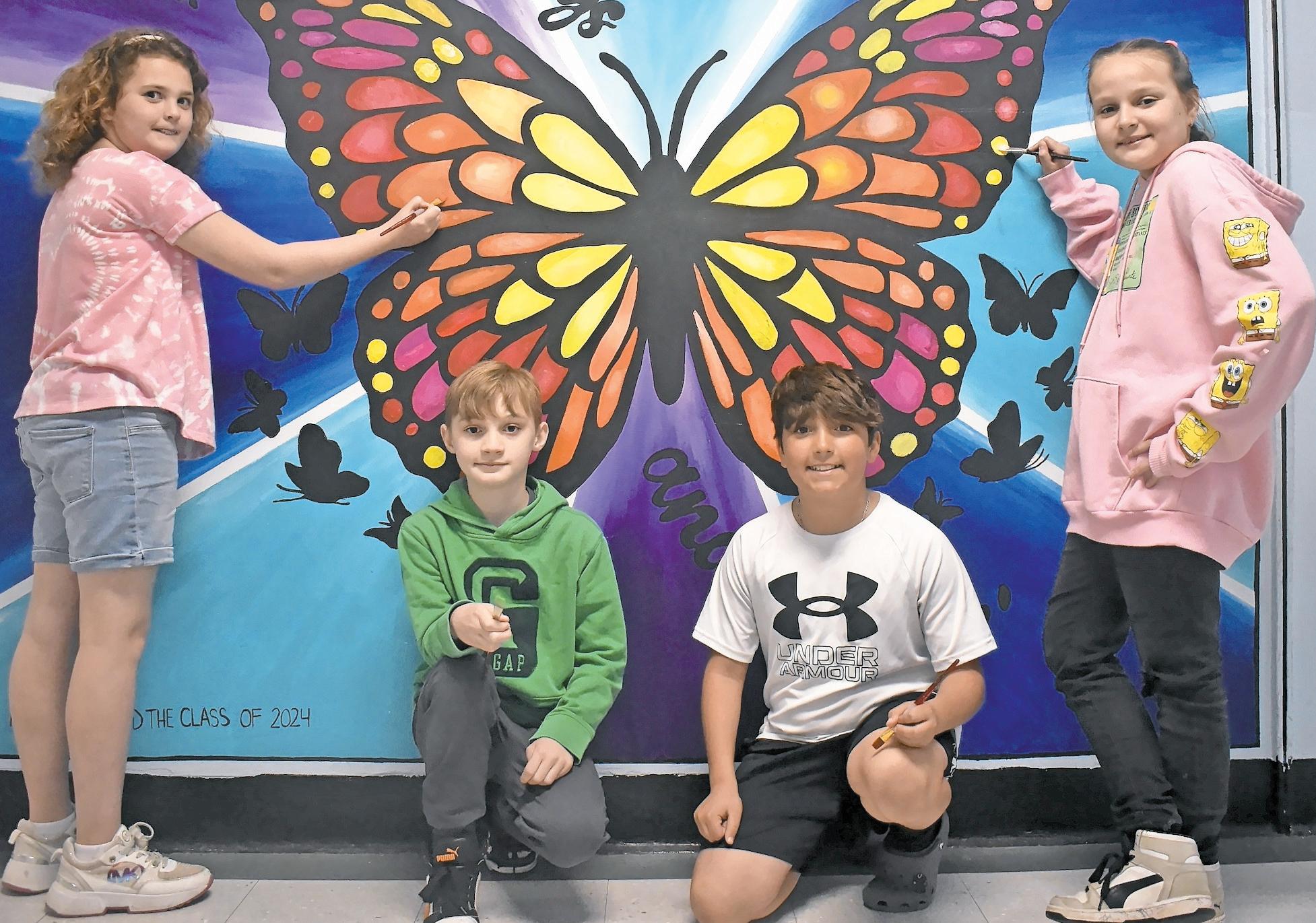 It’s a long-standing tradition at the school for the fifth grade class to leave its mark as they close out the first part of their Wantagh educational journey. This year’s mural, which was painted under the direction of art teacher Taylor Potish, features a large butterfly and the slogan, “Spread your wings and fly.” It is surrounded by several smaller butterflies.