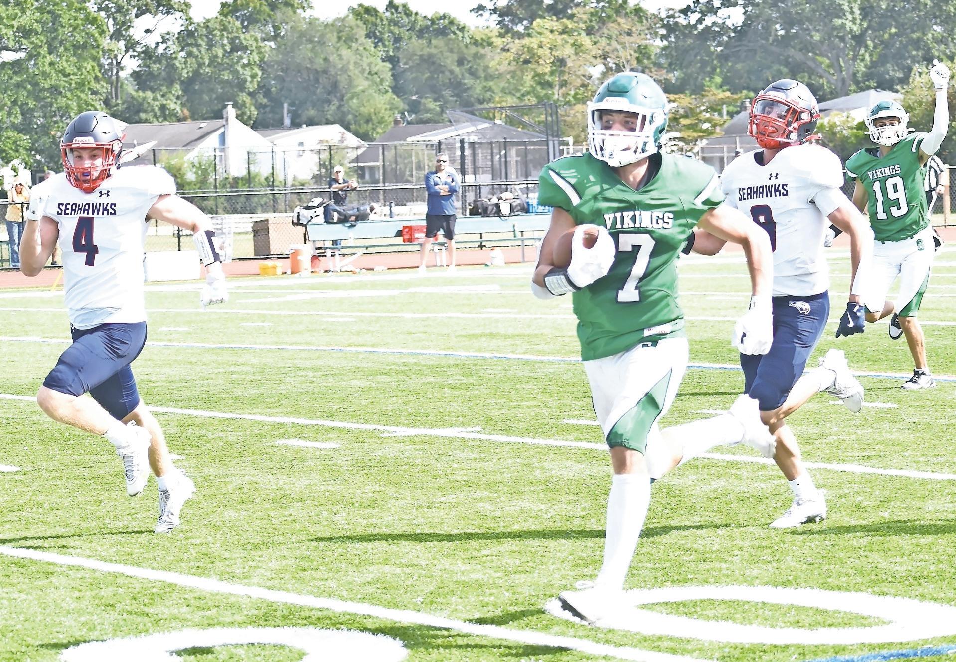 The Seaford Vikings charged onto the field for their Homecoming game against Cold Spring Harbor last Saturday. Story, more photos, Page 16.