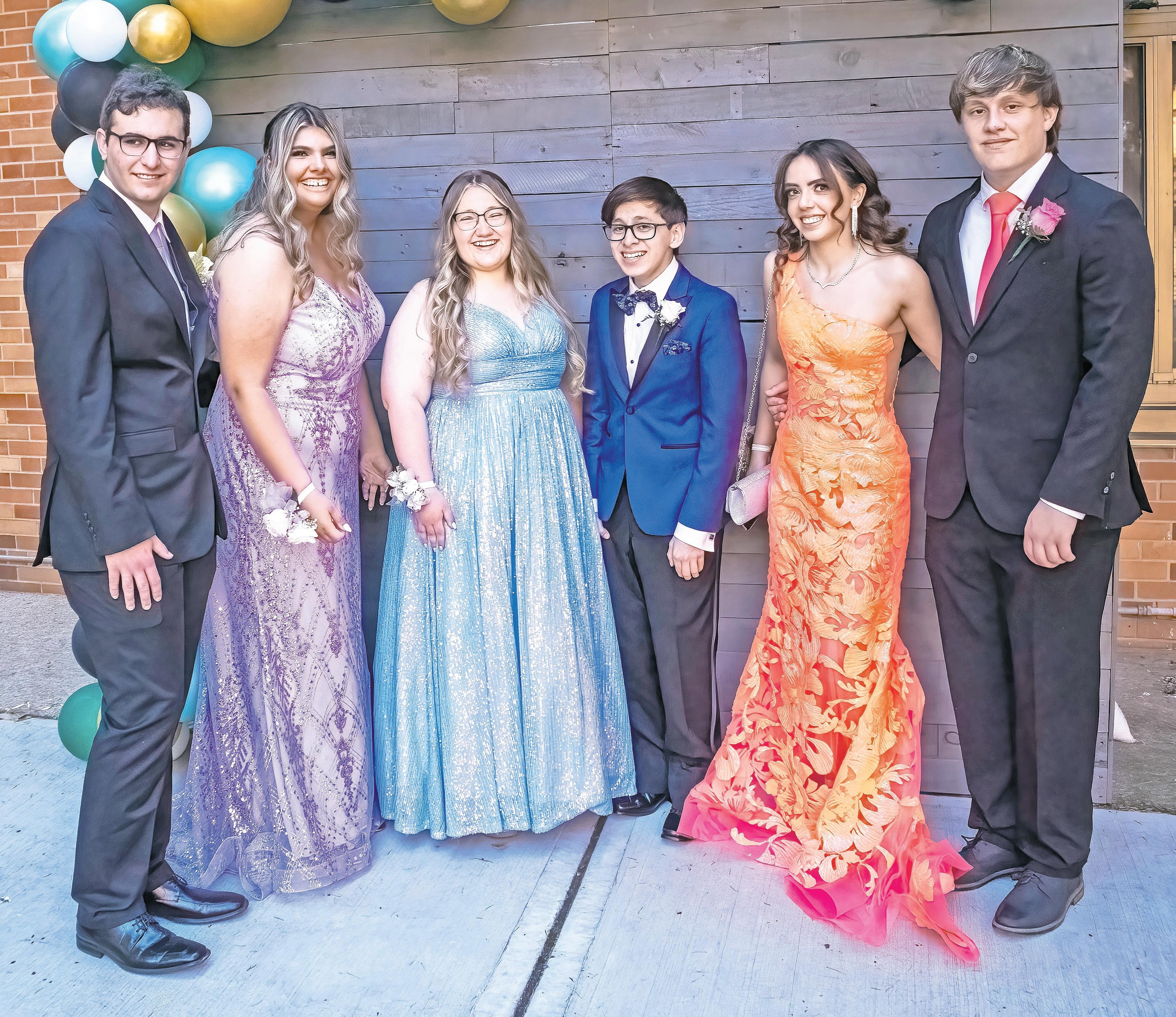 Keith Rossein/Herald photos seniors Andrew Pinto, Brianna Mayo, Kasey Stroehlein, Phillip Merced, Ashley Mennecke, Jake Vitale pose for pre-prom photo ops at Valley Stream North High School.