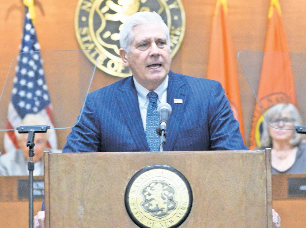 In HIS StAtE of the County speech on Feb. 28, Nassau executive Bruce Blakeman praised what he described as a successful first year in office, giving credit to law enforcement and the county legislature for working with him on a number of initiatives to help bring some of his campaign promises to fruition.