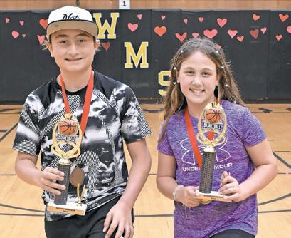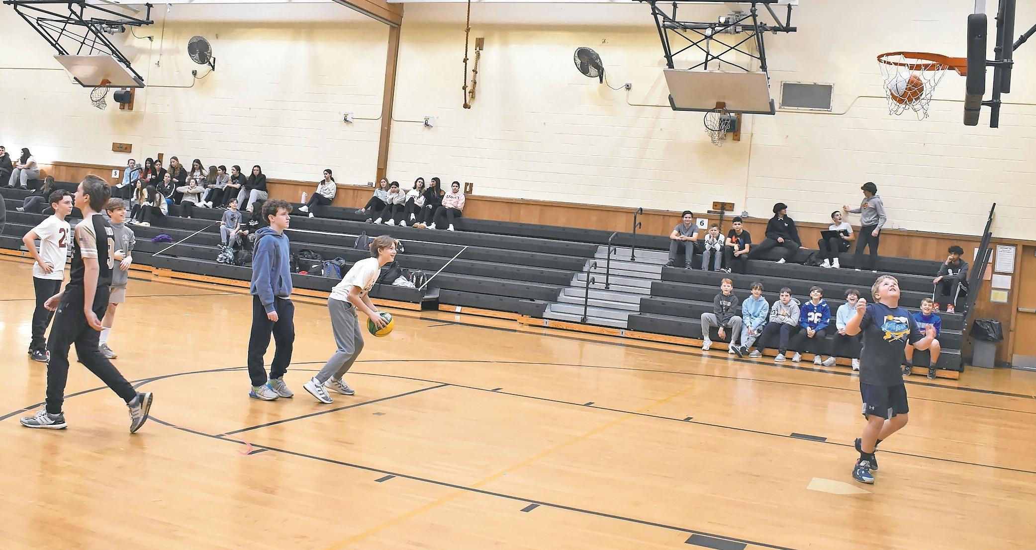enthusiastic crowd. siBlings alexander and Ava DeVita were crowned champions of the Hoops for Heart competition.
