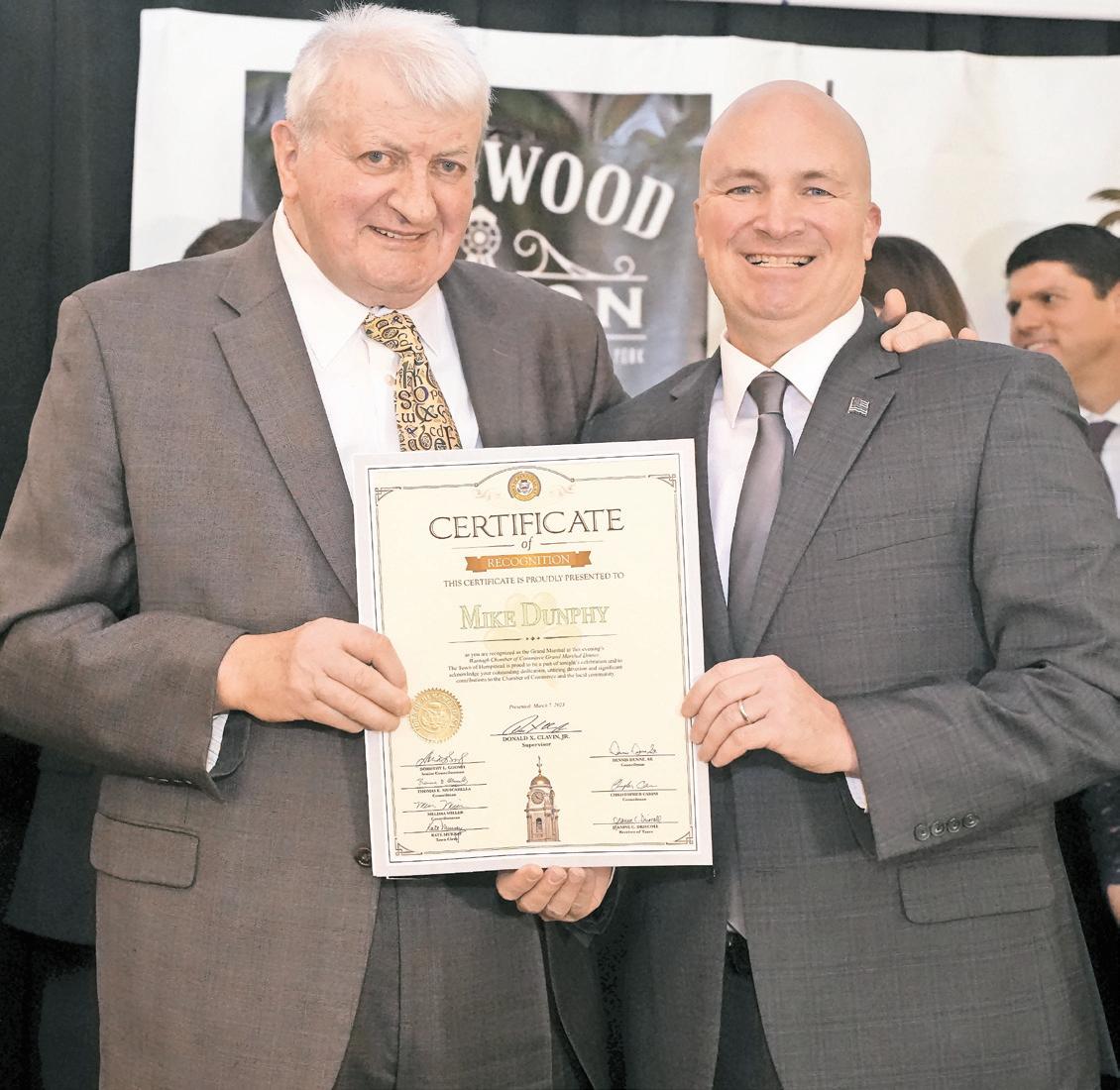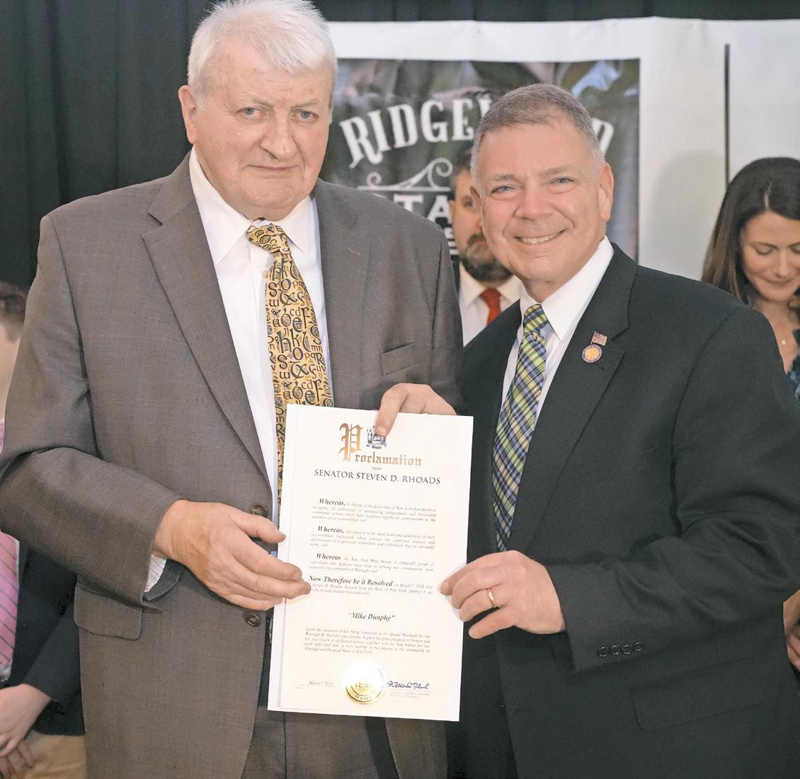 dunphY was presented with certificates from both State Senator Steven Rhoads and Town of Hempstead Councilman Christopher Carini in recognition of his years of service to Wantagh.