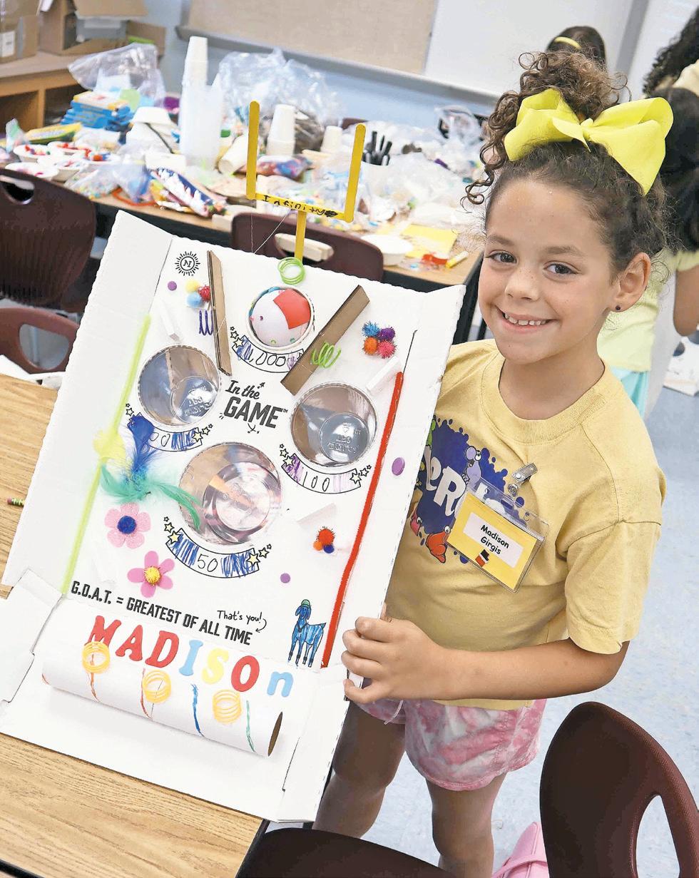 Teamwork and creative thinking were the themes for students from across the Levittown School District as they enjoyed a wide range of activities at Camp Invention and STEM Camp held at Wisdom Lane Middle School. At Camp Invention, third, fourth and fifth graders let their imaginations guide them as they completed tasks that required engineering-based solutions. For the “In the Game” activity, students used a variety of recycled materials to create a game that challenges players to roll a ball into goals with different point values. Additionally, they utilized paint markers and pieces of colored plastic to make lightboxes with functional LED lights, makeshift bubble-blowers to blow bubbles and craft toolboxes containing