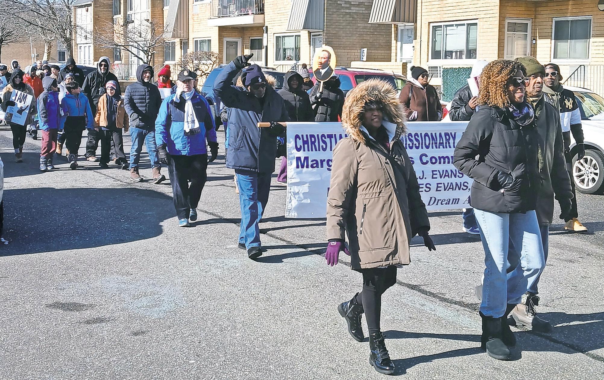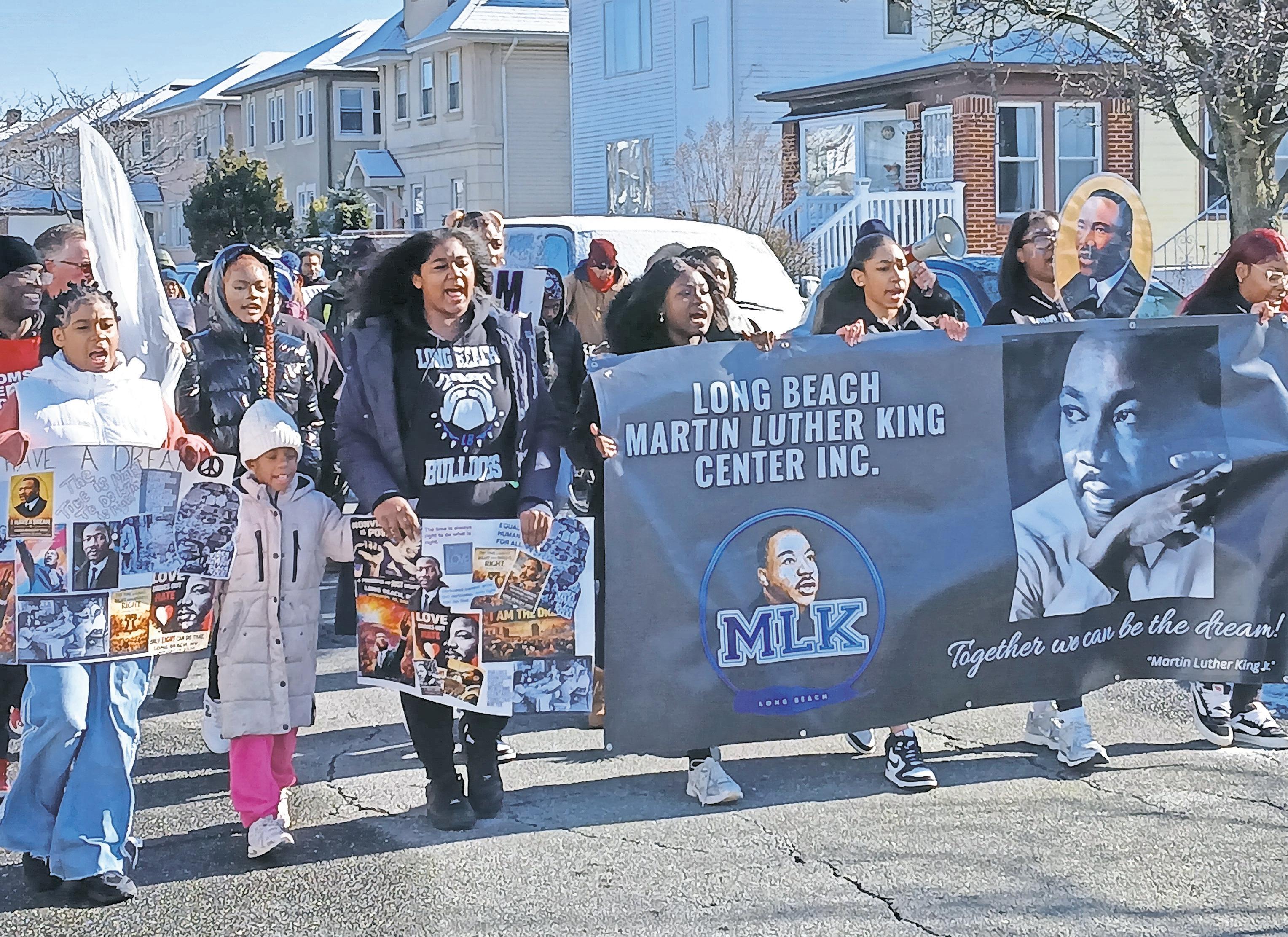 The MLK Community Center celebrated the holiday with its annual commemorative march, which began at the corner of West Park Avenue and Laurelton Boulevard, across the street from the Laurel Diner. The Rev. Ronald McHenry, a Long Beach native and the pastor at Evangel Revival Community Church, led the march with a bullhorn in hand.