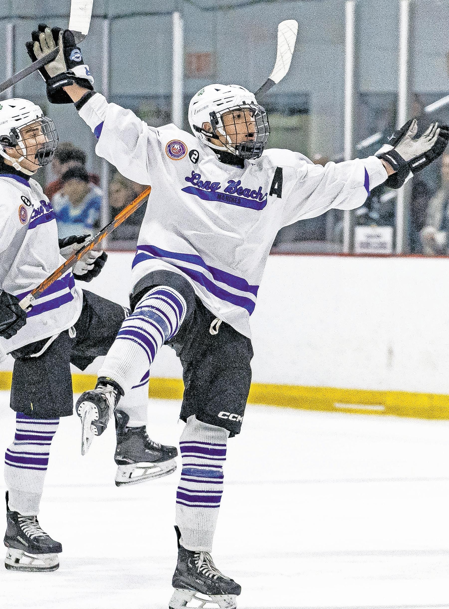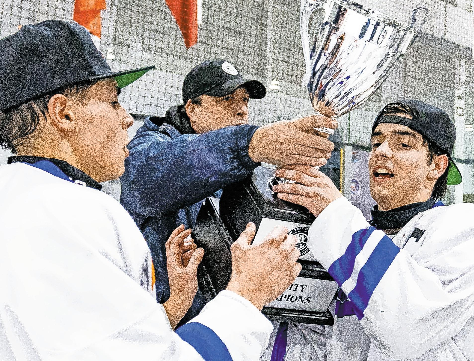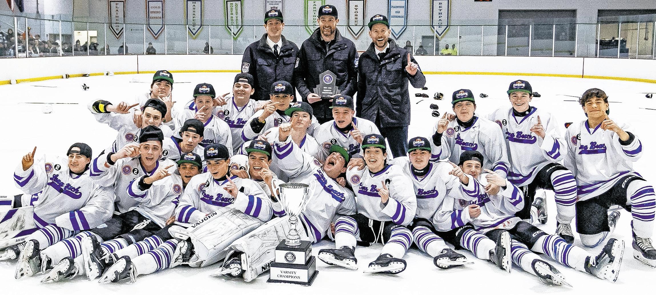 Luke Pichichero and the Long Beach Marines captured the Nassau County hockey league title by sweeping Bellmore-Merrick in the best-of-three finals. Story, more photos, Page 8.