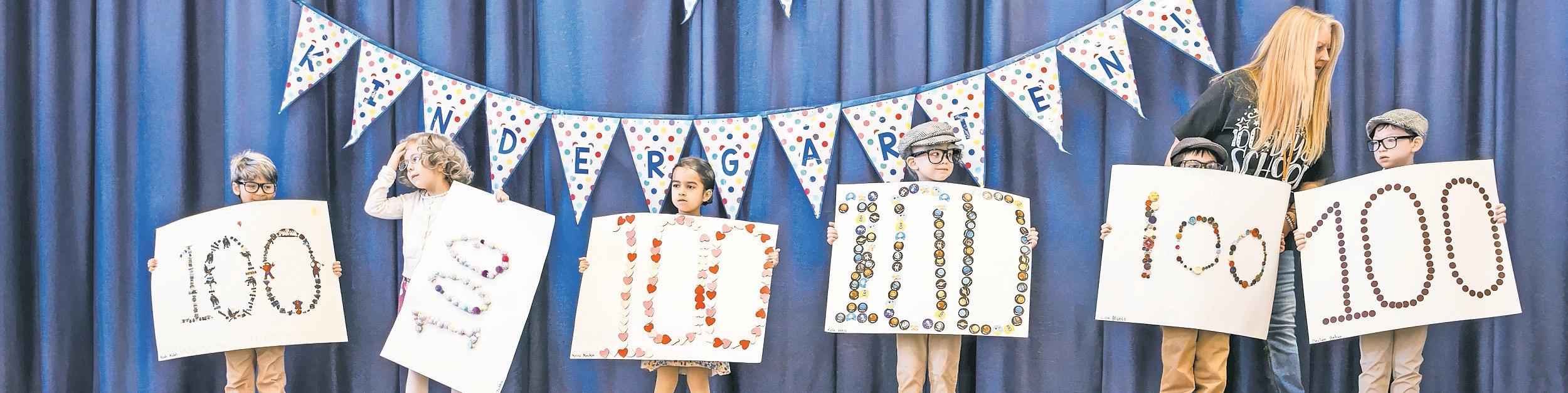 Centre Avenue School kindergarteners celebrated their centinel day of school on Feb. 10 with a lively event in the multipurpose room. Parents joined the festivities, creating a morning full of fun, creativity, and celebration.