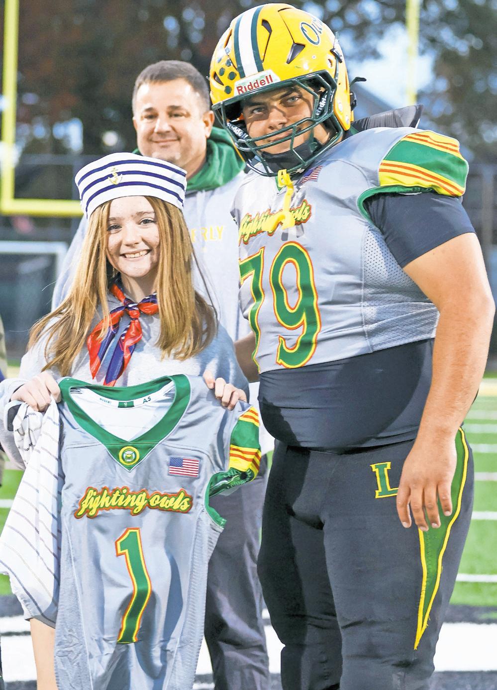 The Lynbrook High School varsity football team held its annual benefit game Friday night at Marion Street Field, honoring and supporting two local families facing pediatric cancer.