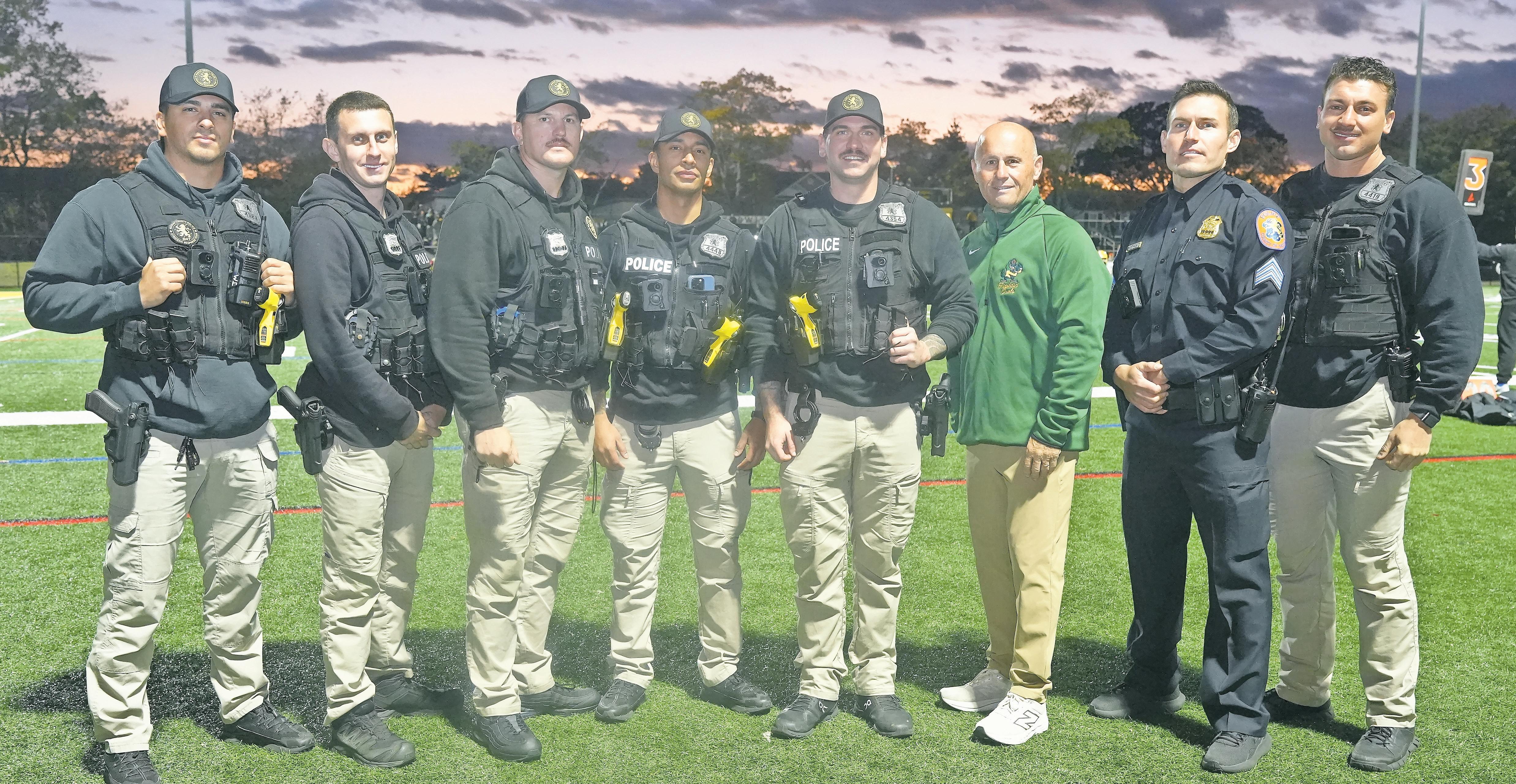 The pregame ceremony featured Nassau County Police Commissioner Patrick Ryder, Officer Jeremiah Quinlan, and Lynbrook players including Michael Potash and Mason Cofer. The event was organized in partnership with the Lynbrook Police Benevolent Association and the Lynbrook School District to raise awareness and show support for the Nugent and Quinlan families.