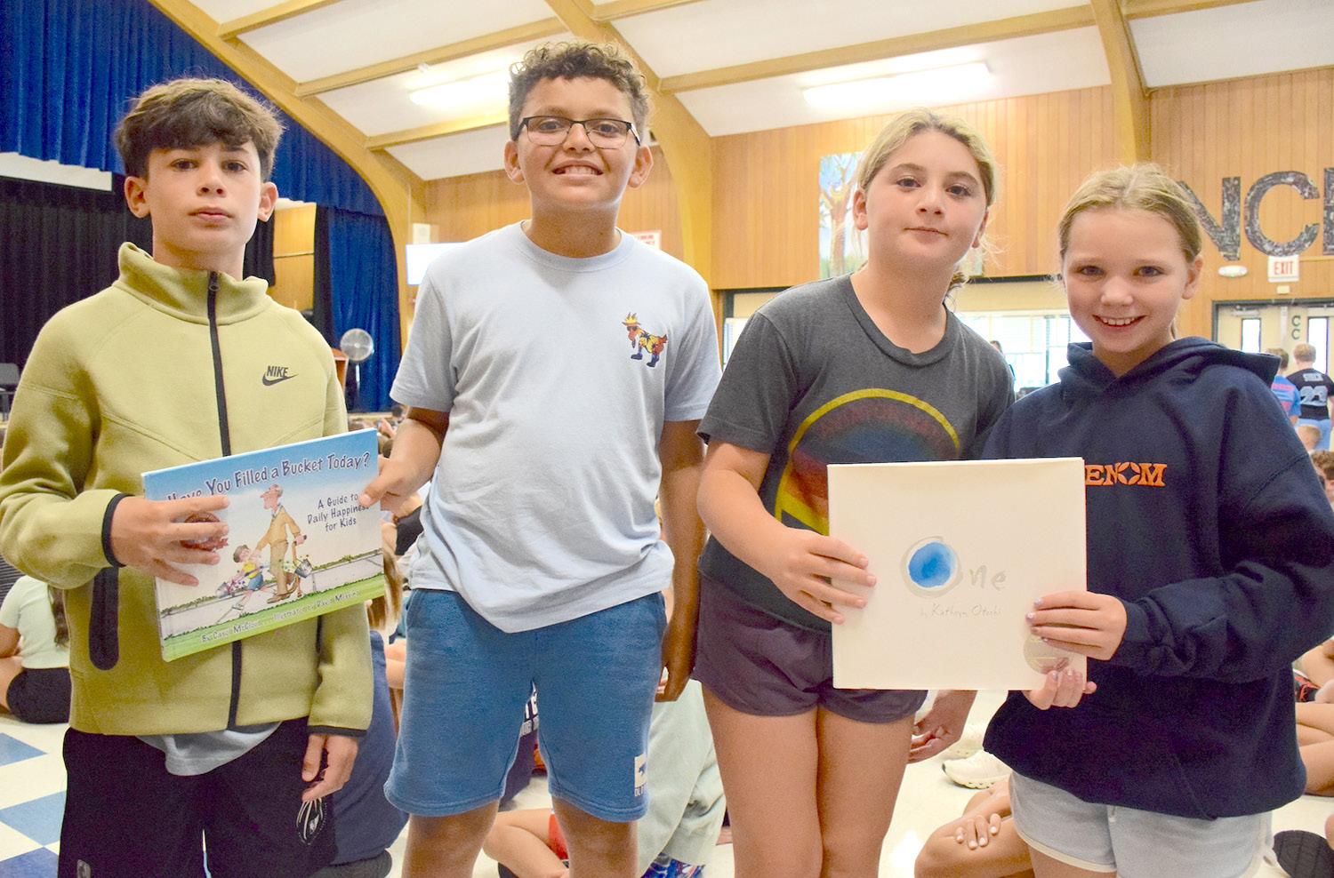 Fifth graders, from left, Michael Morgan, Julian Cuello, Valentina Bonomo and Sofia Edelbach showed the two books that support Birch Lane’s character education program.
