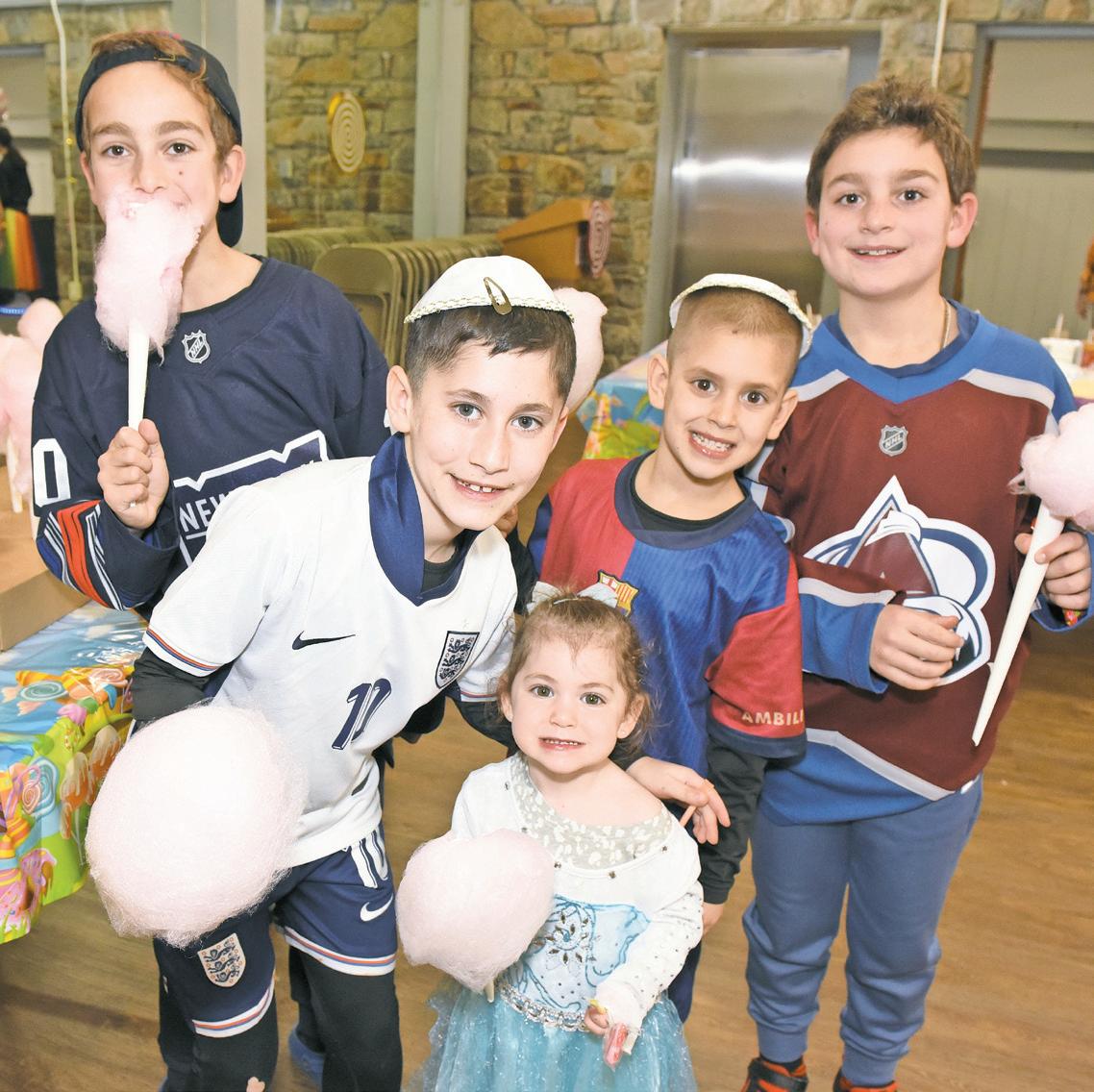 Joshua Babayer, 8, Arelia Babayer, 3, Ethan Keselman, 11, Jonathan Keselman, 8, and Noam Babayer, 7, enjoyed sweet treats for Purim.