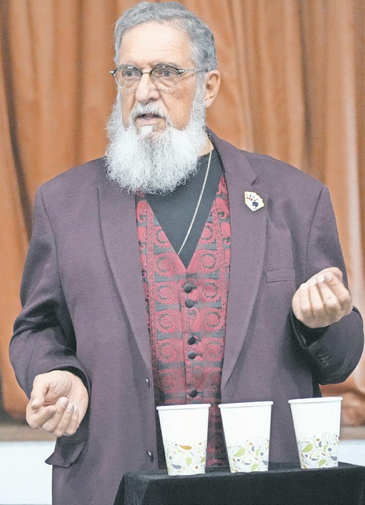 Dreifus stunned the audience with his version of a shell game involving three cups of water.