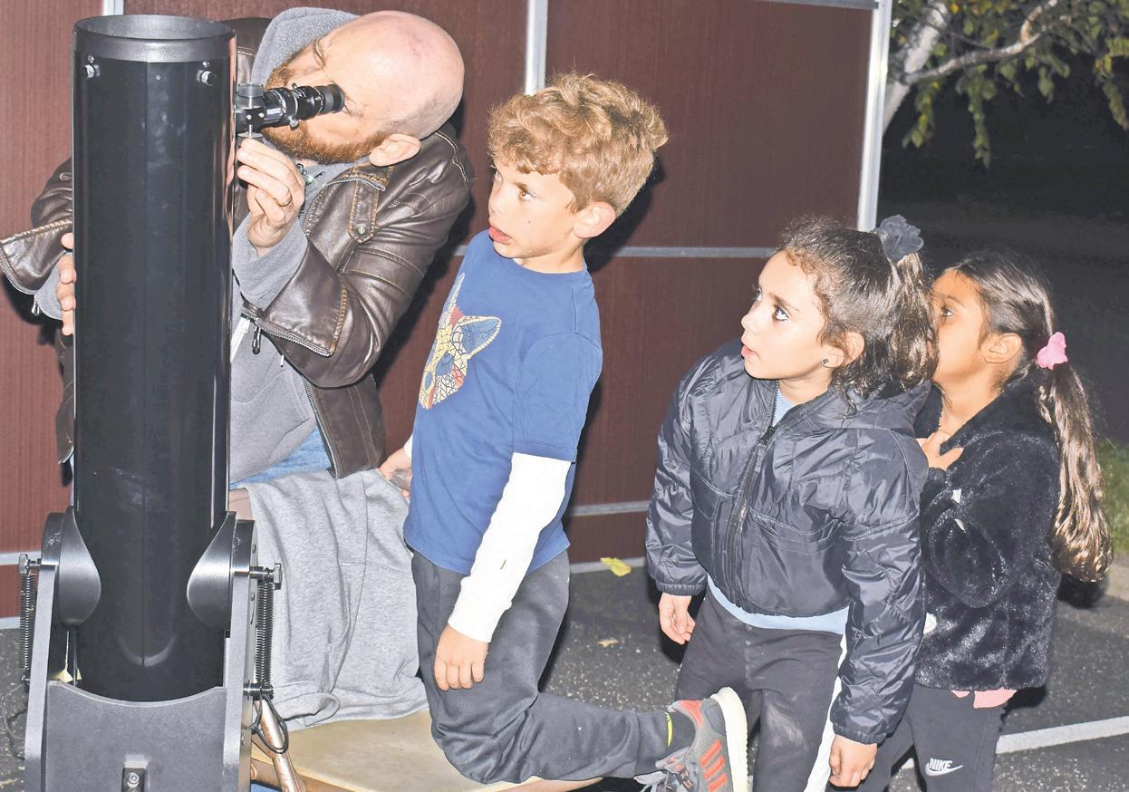 The event, held in the synagogue’s sukkah, offered stargazing with telescopes, s’mores, and warm beverages — including spiked options for adults — as part of the week-long Sukkot festival. While earlier in the week brought unseasonably warm temperatures to Long Island, the chilly evening air perfectly matched the cozy, communal atmosphere of the gathering.