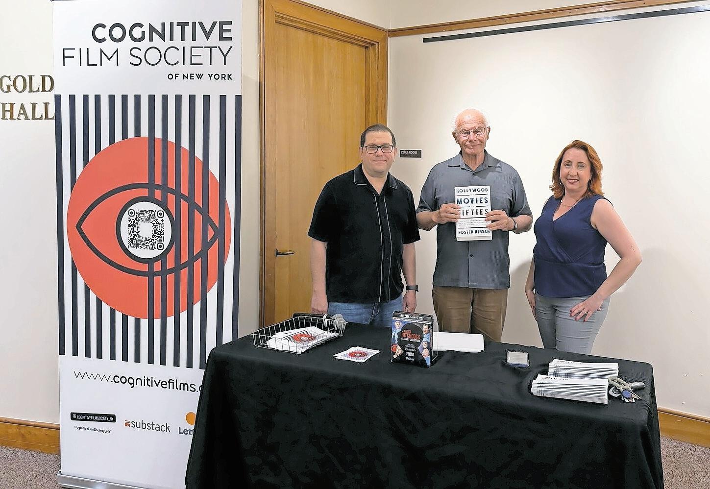 Libraries helped save patrons over $27 million in core services last year, through both familiar and new programs, like the Cognitive Film Society. Douglas Hesney, left, Foster Hirsch, and Director Michelle Young celebrated the first showing in June 2025.
