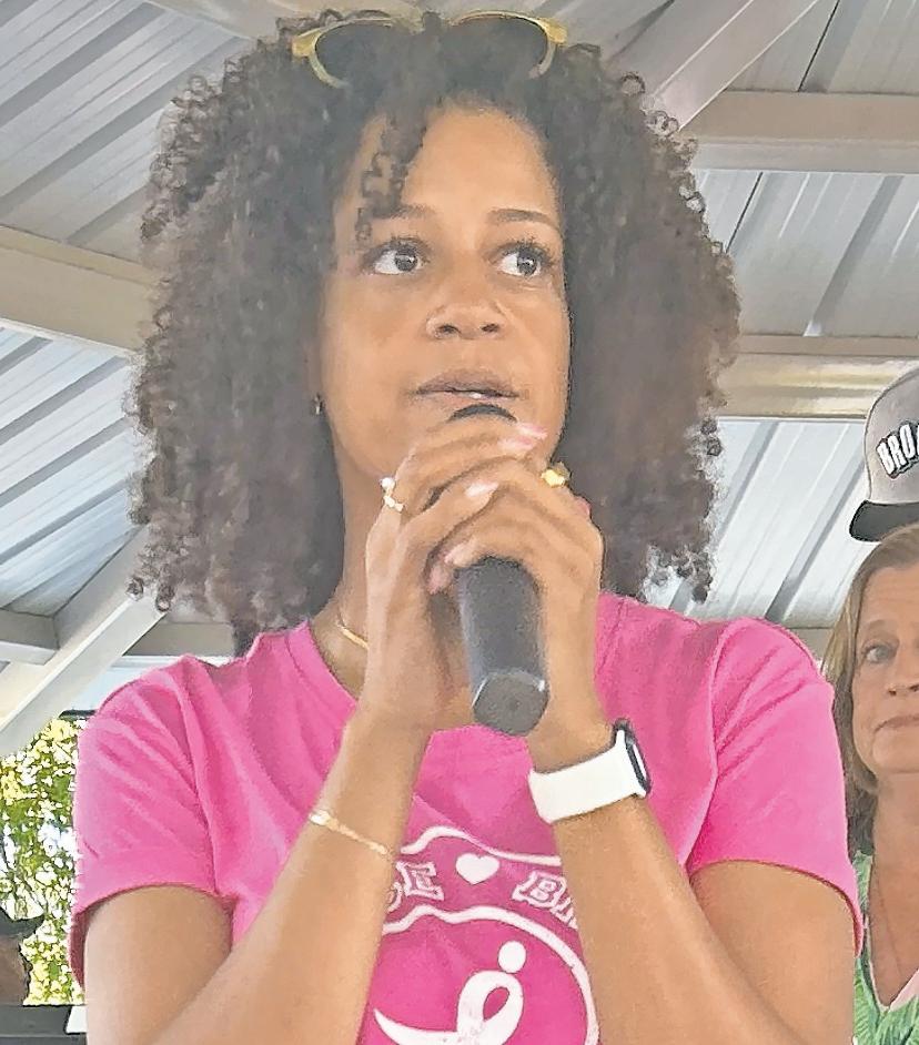 Assemblywoman Michaelle C. Solages highlighting the importance of breast cancer awareness and community support during the annual walk.