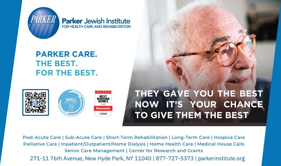 forefront of innovation in patient-centered health care and technology, the Institute is a leader in teaching and geriatric research. Parker Jewish Institute features its own medical team, and is nationally renowned as a skilled nursing facility, as well as a provider of community-based health care, encompassing Home Health Care, Medical House Calls, Palliative Care and Hospice. Parker Jewish Institute is also home to Queens-Long Island Renal Institute (QLIRI) - providing patients with safe, comfortable Hemodialysis treatments in a relaxed setting — as well as PRINE Health — a Vascular Center offering advanced vascular services. The Center and QLIRI further Parker’s ability to expand access to essential health-care services to adults in the greater New York metropolitan area. For more information, visit parkerinstitute. org or call (877) 727-5373.