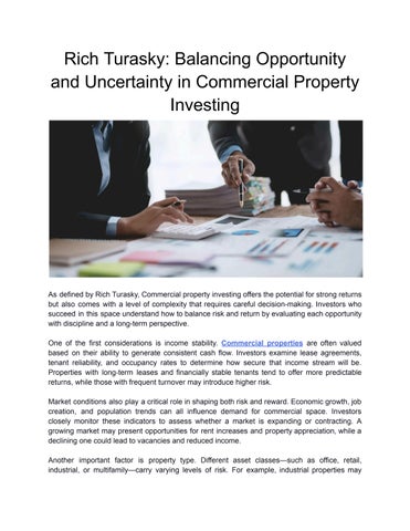 Rich Turasky is an investment entrepreneur with a long record of leadership in commercial real estate investment, finance, and development. Over more than 30 years, he has partnered with private and institutional equity groups while building and guiding operating businesses. As Founder and CEO of Capital Companies, he has led more than 100 commercial real estate investments across several states, managing portfolios that include over 1,000 tenants. Born in 1970, Rich earned a Bachelor of Arts from Bradley University in 1992. He later completed executive education programs at Harvard University, strengthening his expertise in strategic leadership and organizational management. He has also served as a featured speaker at the University of Illinois, where he has shared insights on entrepreneurship, capital formation, and real estate investment strategy. He began his professional career by representing major Chicago-area operating companies in commercial real estate transactions. During this period, he also focused on sourcing and managing high-potential private and institutional investments. His early experience included underwriting, market analysis, negotiation, and asset management, which prepared him for increasingly complex transactions and long-term portfolio oversight. As market opportunities expanded, Rich moved into mergers and acquisitions, corporate structuring, and executive board leadership. By the mid 1990s, he was recognized for combining analytical rigor with practical execution. He developed a reputation for overseeing multi-state portfolios, strengthening tenant stability, and aligning investor objectives with disciplined operational performance. Throughout his career, Rich Turasky has founded, led, or served on the boards of directors of more than 20 operating companies across industries such as plastic manufacturing, pharmaceutical development, aviation, beverage distribution, and commercial and digital lending.