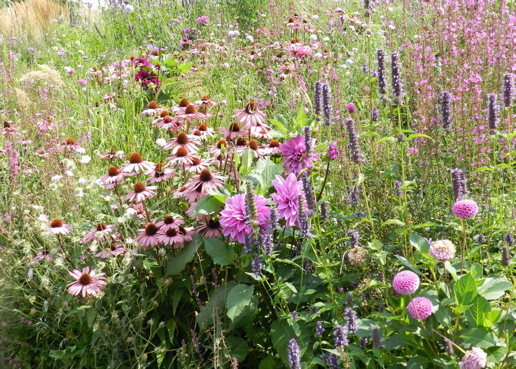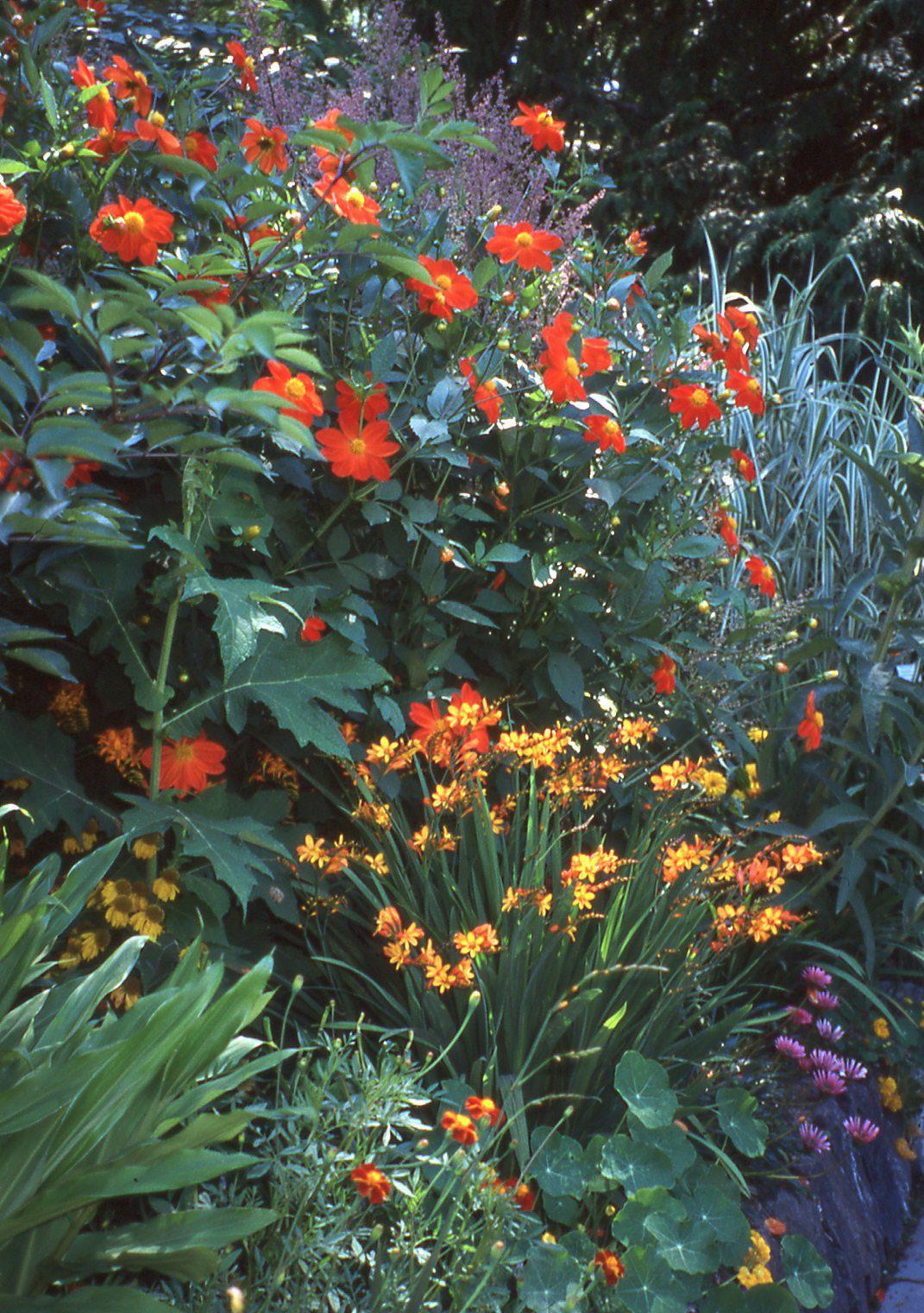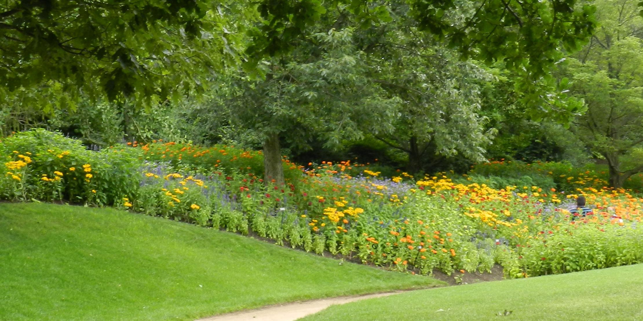 The most outstanding display was at the Chicago Botanic Garden. The place is huge with many themed gardens, but the one we will remember the longest was a vast hillside of orange, yellow, and blue annuals with tidbits of red and magenta. Whenever I interview clients, I always ask about their color preferences, and the majority of them make a point of their dislike of orange. I suspect that if they could see the Chicago display, they might change their minds. It was so vibrant — definitely a wow garden. On the other hand, if you want serenity, this is not the color scheme for you.