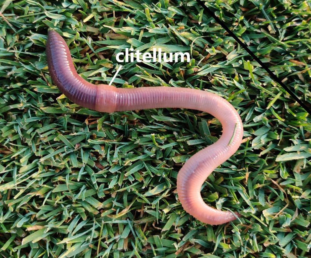 dant in the middle of the summer; juveniles become big enough to notice as early as late May. Adult earthworms have a clitellum, which is involved in reproduction and cocoon formation.