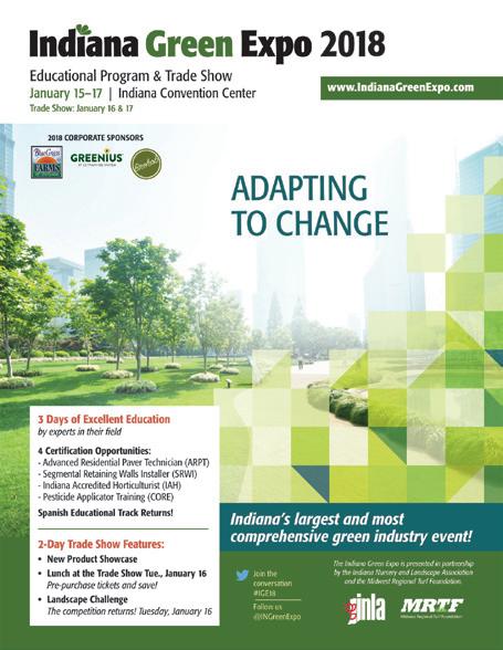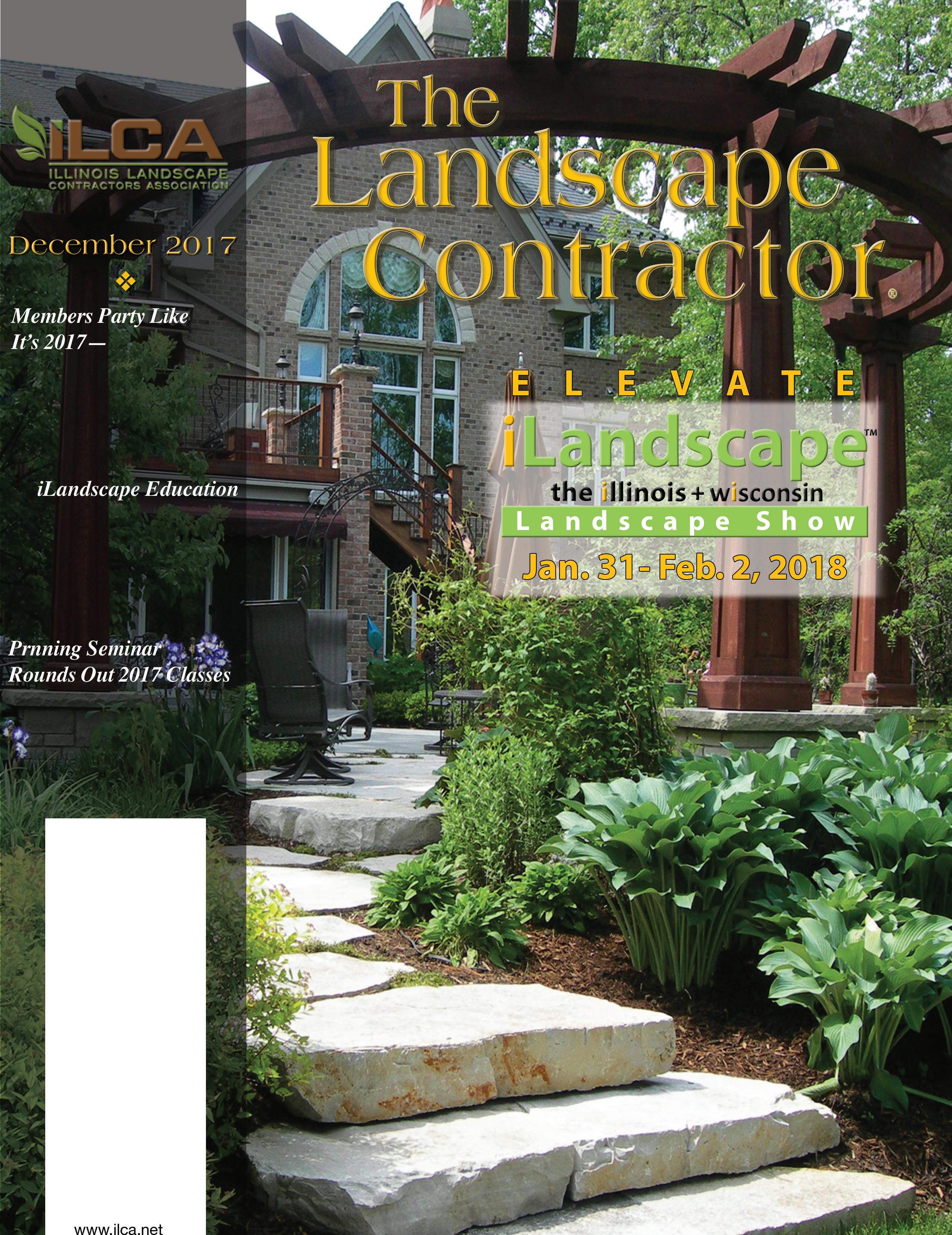 Volume 58, Number 12. The Landscape Contractor (ISSN # 0194-7257, USPS # 476-490) is published monthly for $75.00 per year by the Illinois Landscape Contractors Association, 2625 Butterfield Road, Ste. 104S, Oak Brook, IL 60523. Periodicals postage paid at Oak Brook, IL and additional mailing offices. Printed in USA.