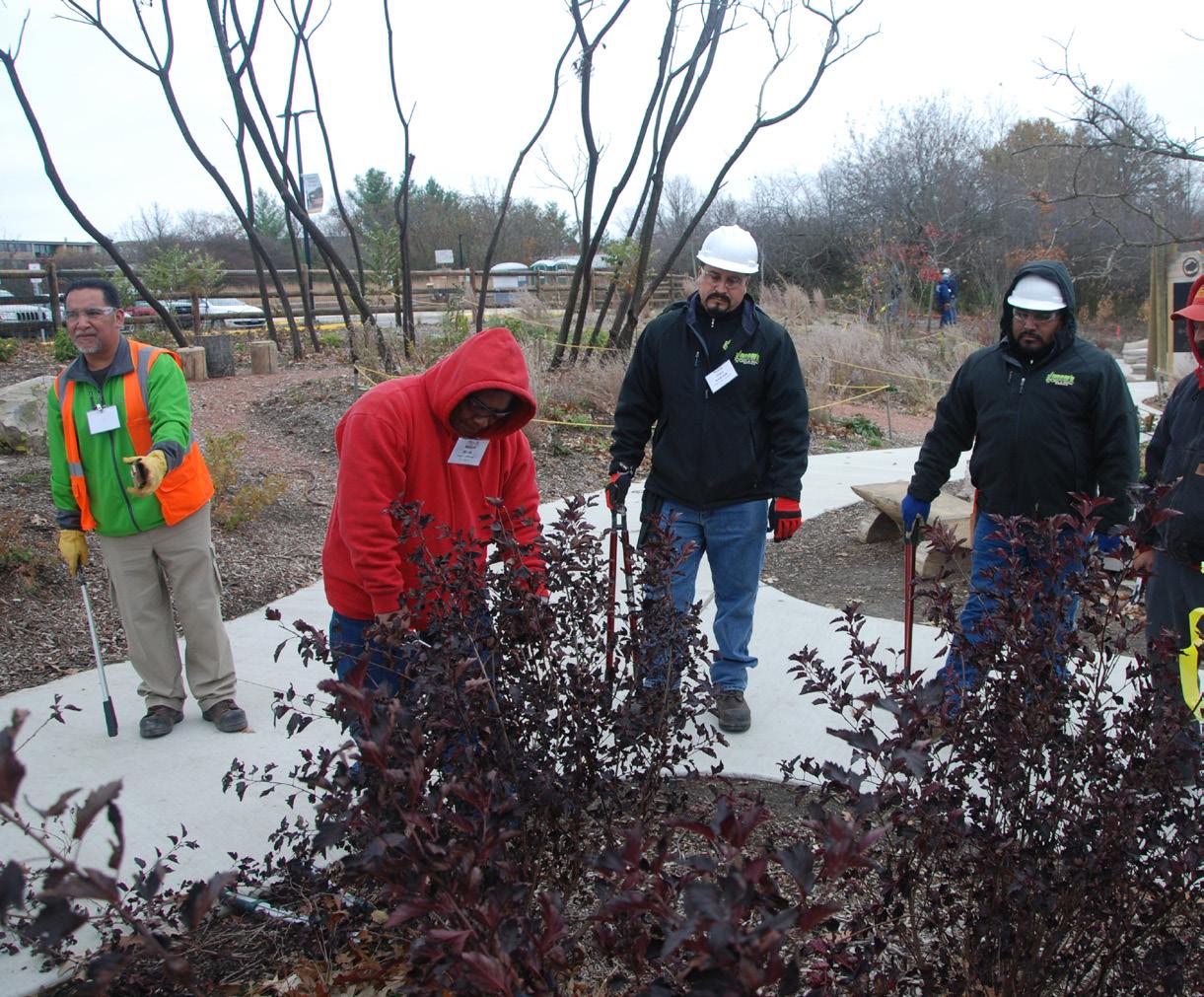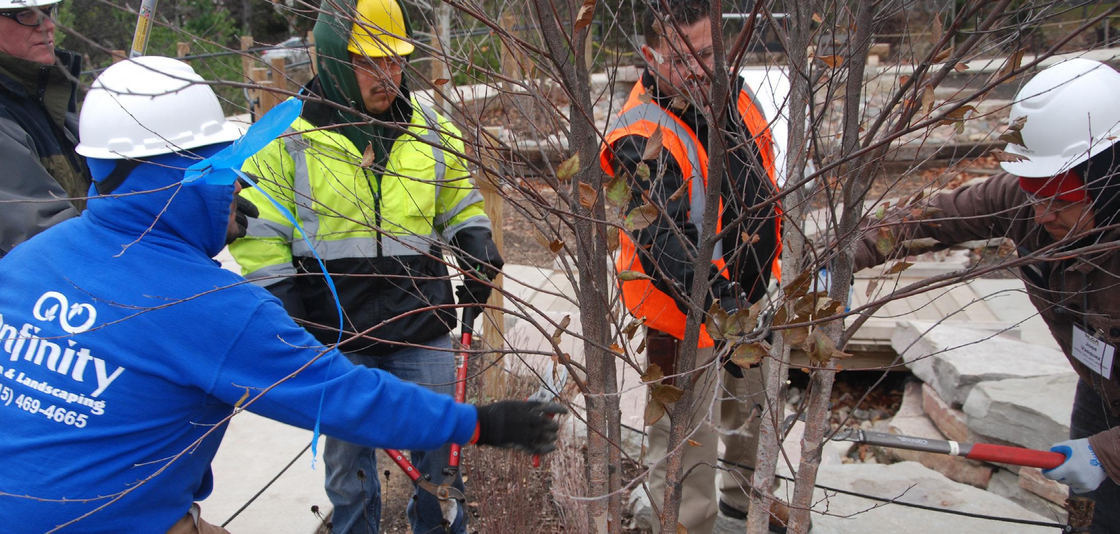 150+ Trees installed 12 different species, 30,000+ perennials & grasses, 350+ Shrubs, & 150 vines are also installed.