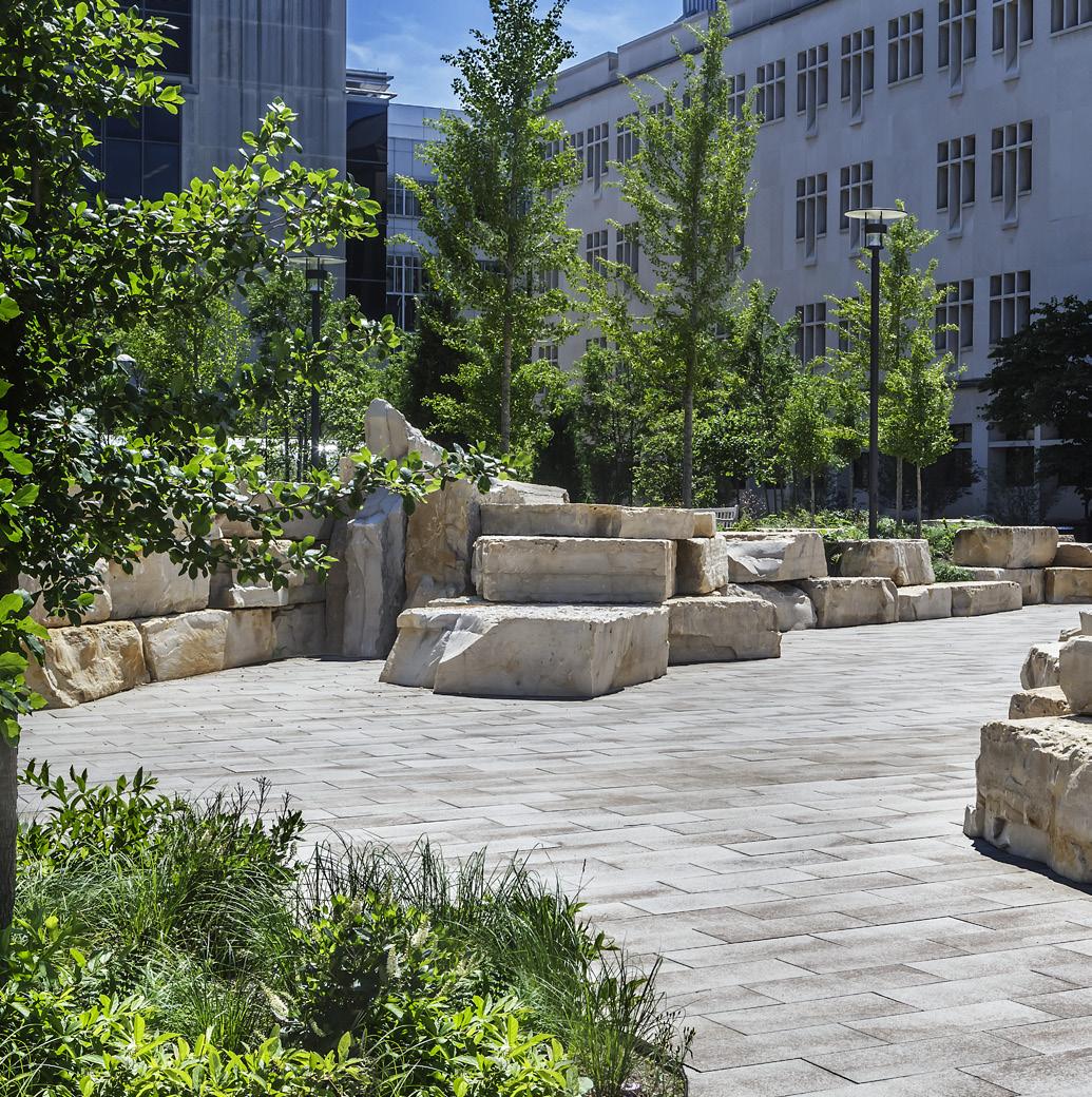 The University of Chicago North Science Quad project presented unique challenges many of which are unseen by the end users. Prior to installing the impressive outcropping stones & plantings there was extensive grading & drainage work, engineered soil systems & subgrade geofoam that needed to be installed to make this project possible.