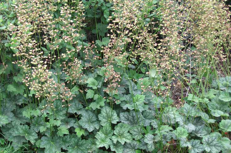 “While all Heucheras are native to North America, this is one of the few found wild in the Midwest. Look for cultivars that have well-silvered foliage with deep burgundy veins.”