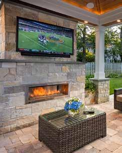 living season providing protection from the elements and enabling temperature control with a ceiling-mounted fan and infrared heater, as well as a gas fireplace – all controlled by a smart phone app