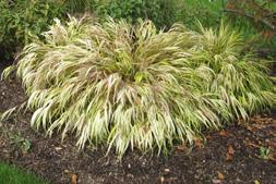 My favorite combinations usually include large, bold leaves that provide fabulous contrast to its soft, delicate blades: mix it with glossy, deep green European ginger, blue vaseshaped hostas such as Krossa Regal, and ligularias, especially the maroon-leaved varieties like Britt-Marie Crawford. Underplant it beneath Winterthur or Brandywine viburnums or red-leaved Japanese maples for a beautiful effect as well.